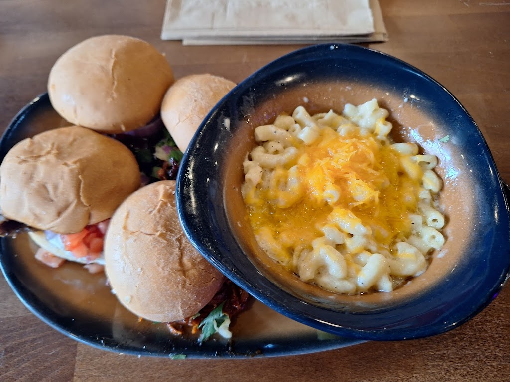 The burgers and fries are good, the dog menu is fun, my mom has told me the brisket was very dry when she had it.