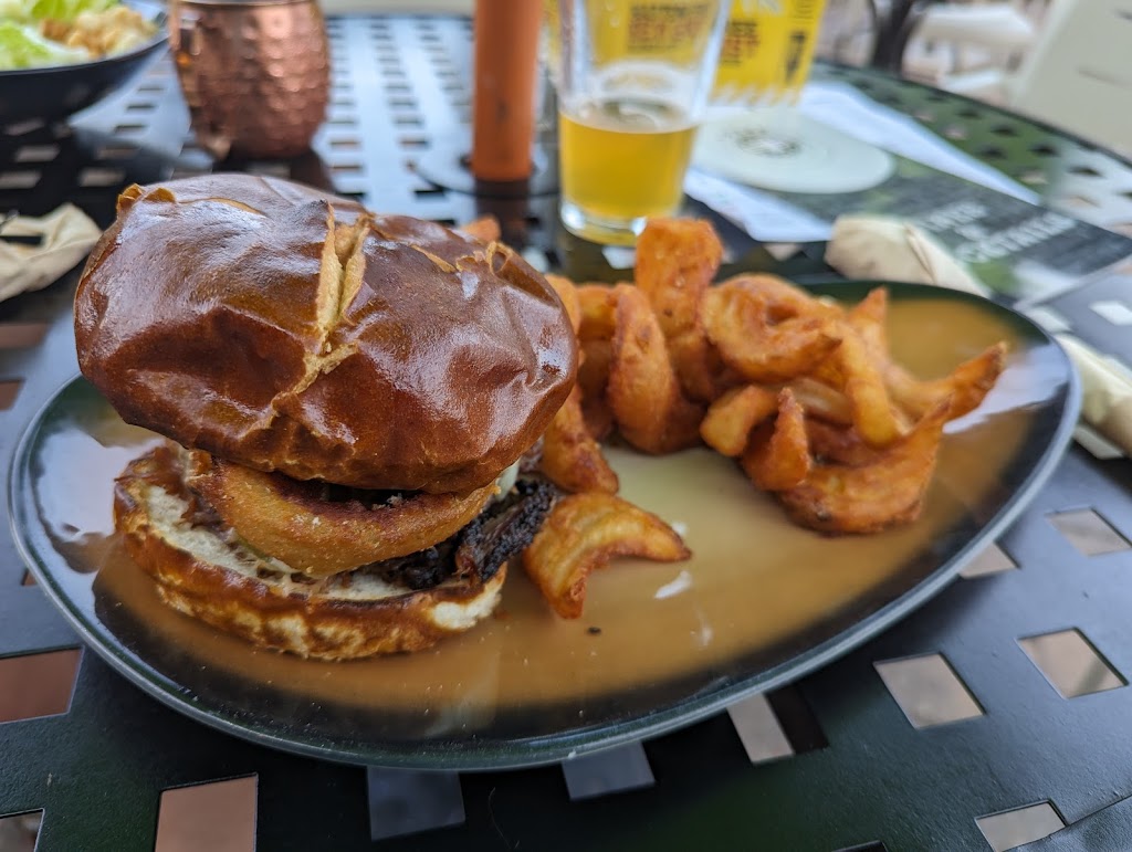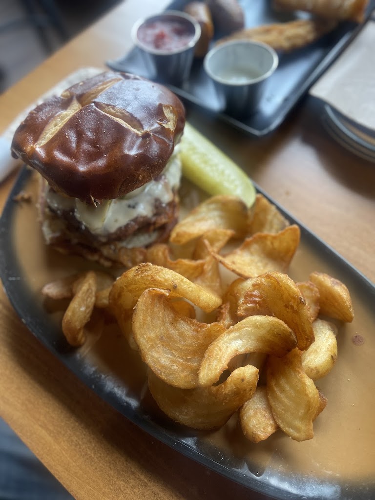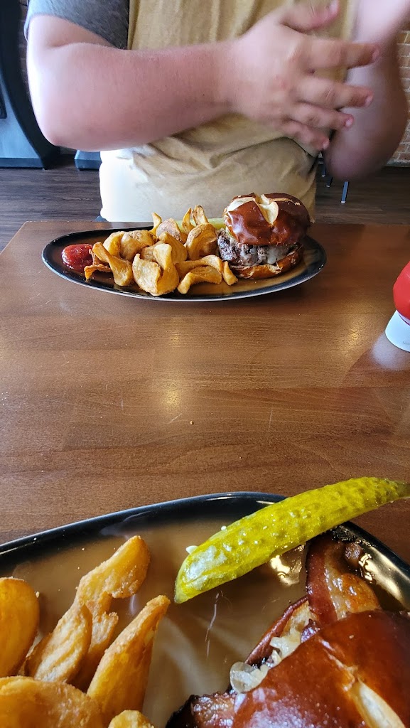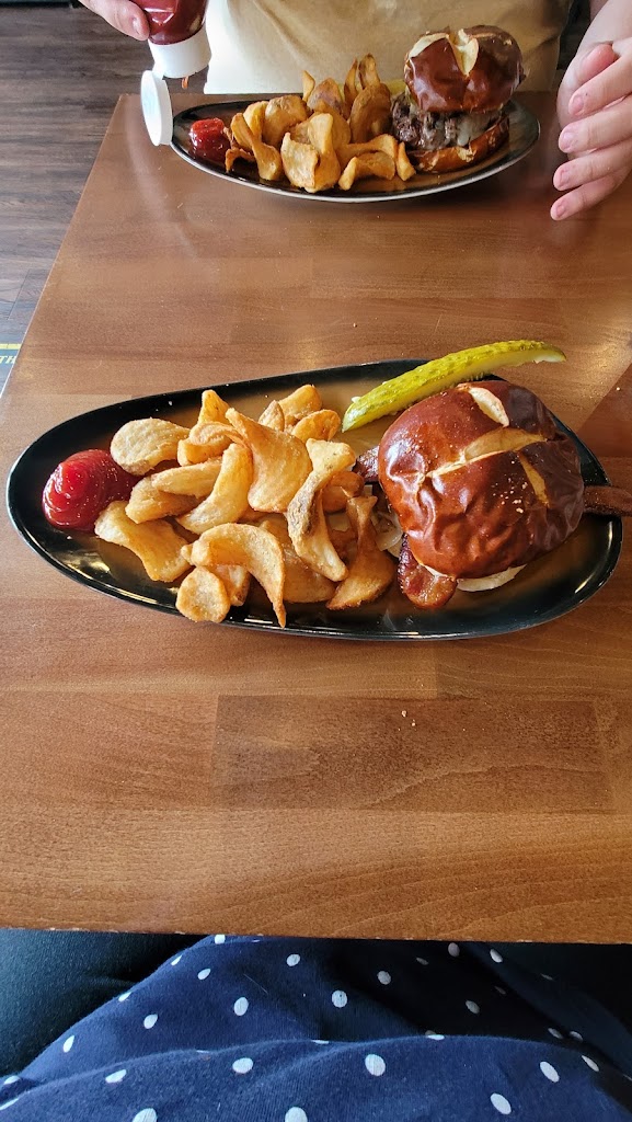 Burgers all on pretzel. Uns need more variety burvers $14 to $12 not that good order two tap beers were skunky. Tbe staff was very young we were there 3 hours had go to bar to get refresbmemts very slow. Had clear dirty platez our self. So for 6 burgers ,4 fryz ,2 bad beers,2 waters& 2mixerz $126.00 not a goox inveztment