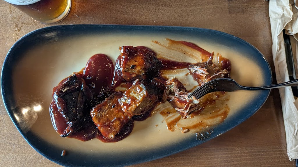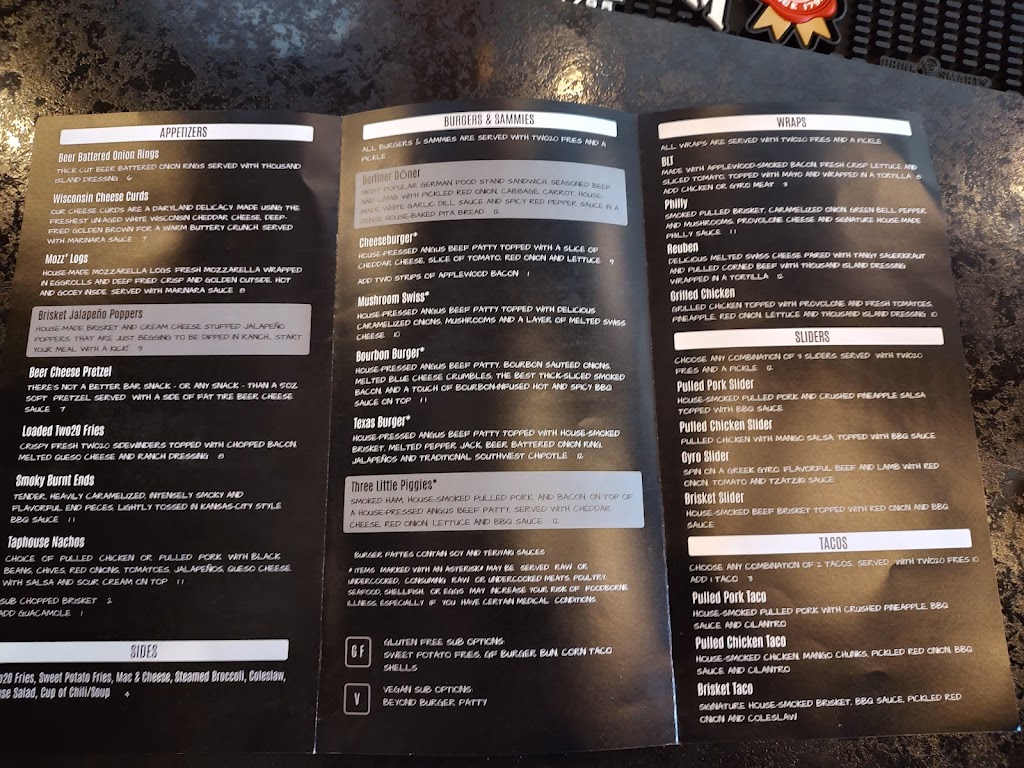 Server was nice but food was brought cold and when we asked for water because my daughter in law was coughing from a jalapeño popper the waitress told her she’d have to wait until the bartender could get her one!!!! Also order was given to us made wrong so they took it off price. But who goes to a restaurant, to Order food to waste? Ordered burnt ends and gave us 5 one inch cube pieces of meat for ten bucks!! The brisket jalapeño poppers you cut them open and it was fat chunks. There wasn’t any meat, it was the fat chunks of the brisket. Literally I almost threw up🤬 Won’t go back
