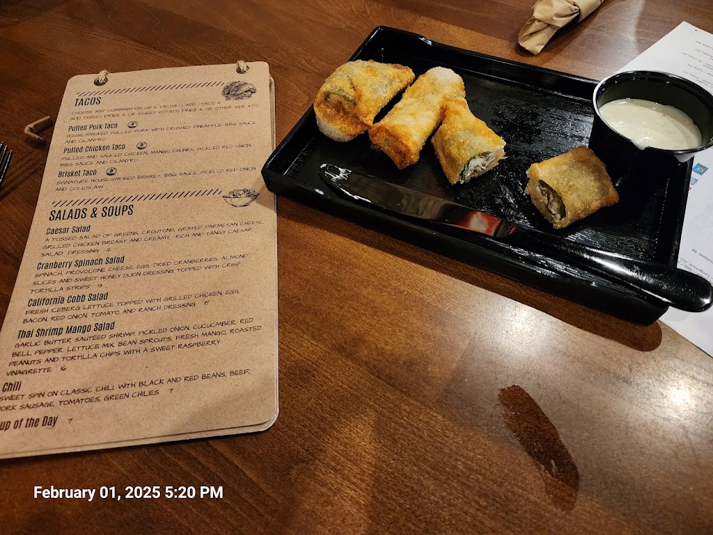 I got the Texas burger and the jalapeño poppers with brisket my only complaint that isn’t even a deal breaker is the burger wasn’t medium rare but fantastic all around