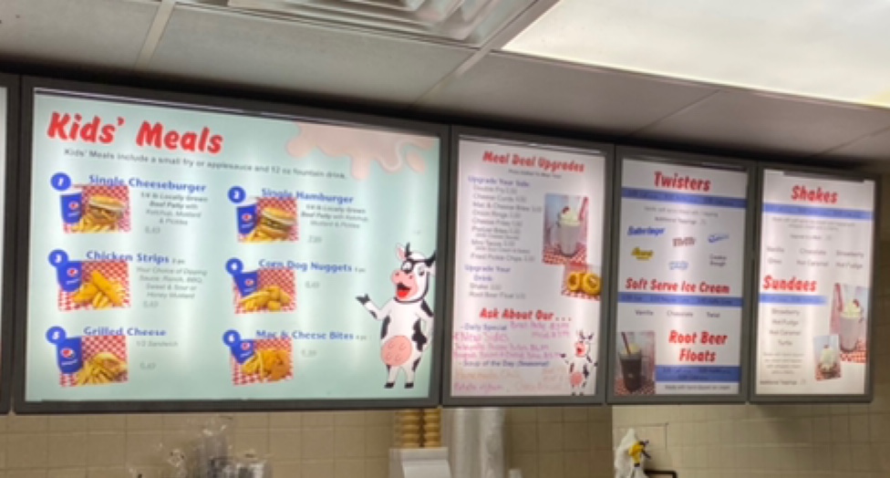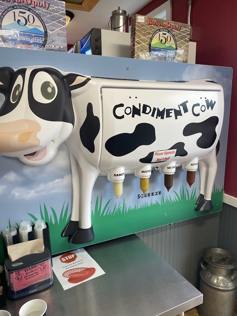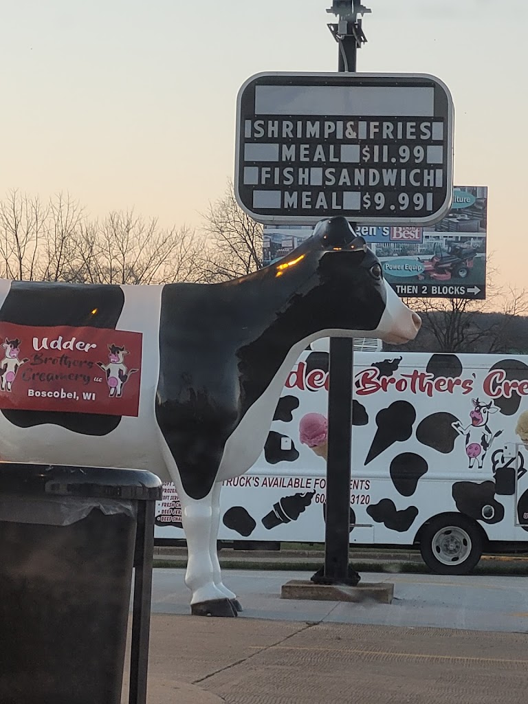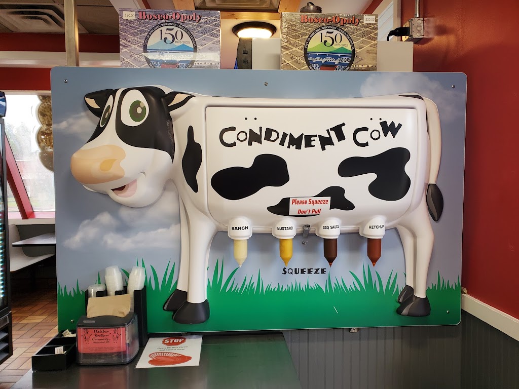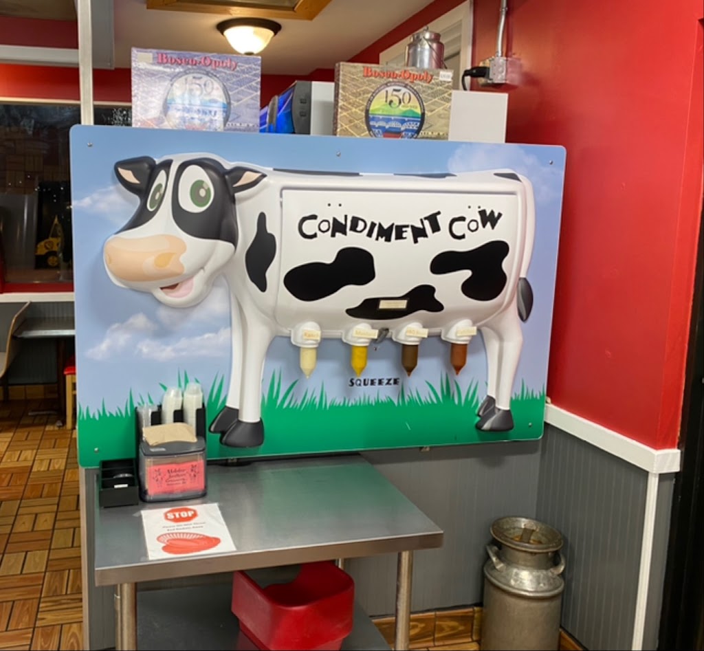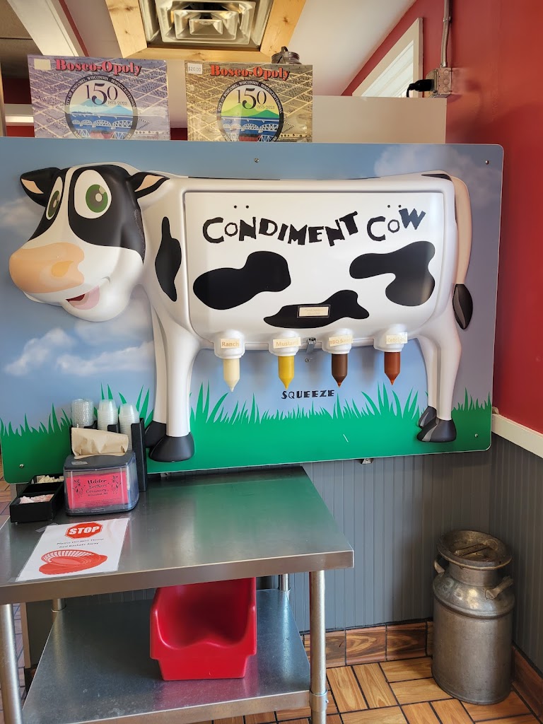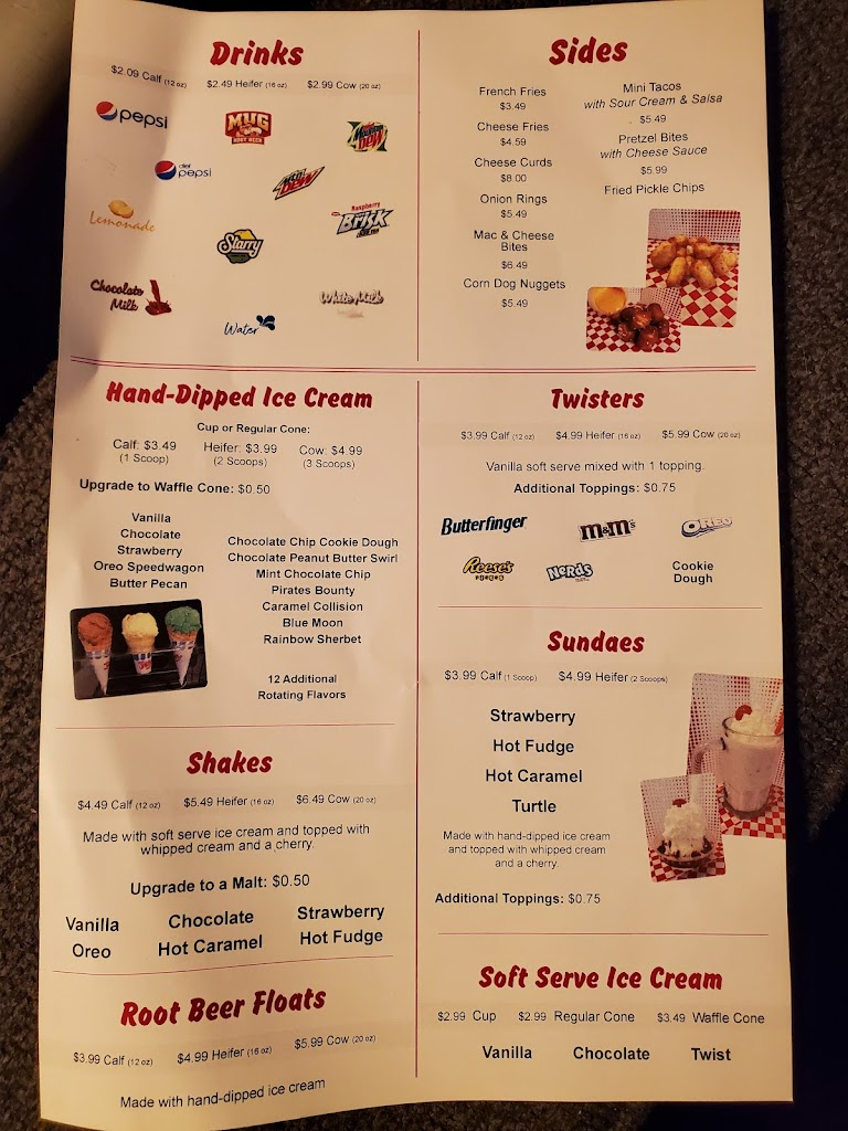 Stopped in for some twist cones and they were amazing. Great service and prices and the “condiment cow” is a hoot.