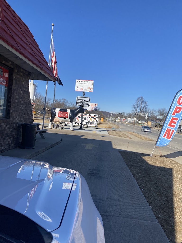 Great small town feel. Everyone welcomed us in like family. I had the pulled pork sandwich with an upgrade to the cheese curds. Those were the best curds I have ever had. Blows Culver's out of the water. Love the selection of ice cream and along with fresh local meat. And the condiment cow is very adorable. If we're in the area working again going have to stop again.