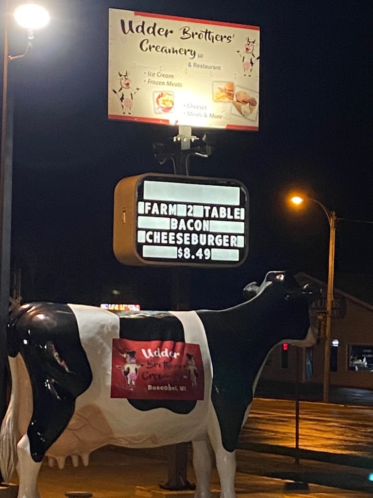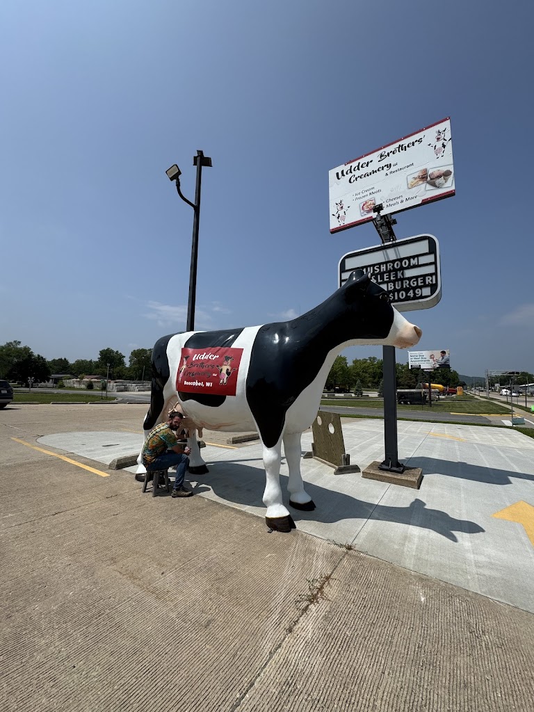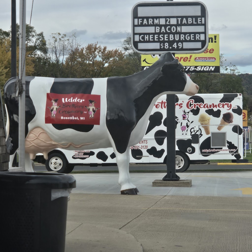 Udder Brothers Creamery is a gem! The burger is simple and delicious - made with locally grown beef! The fried cheese curds are peak Wisconsin gold- dip them in the homemade ranch squeezed fresh from the udder! 😀 The counter service is personal and quaint and the food is made fresh and delivered to your table. Inside and outdoor seating is available. Lastly, the ice cream is excellent- various flavors of rich, hand-dipped ice cream are available as a cone, sundae, or shake 🍦