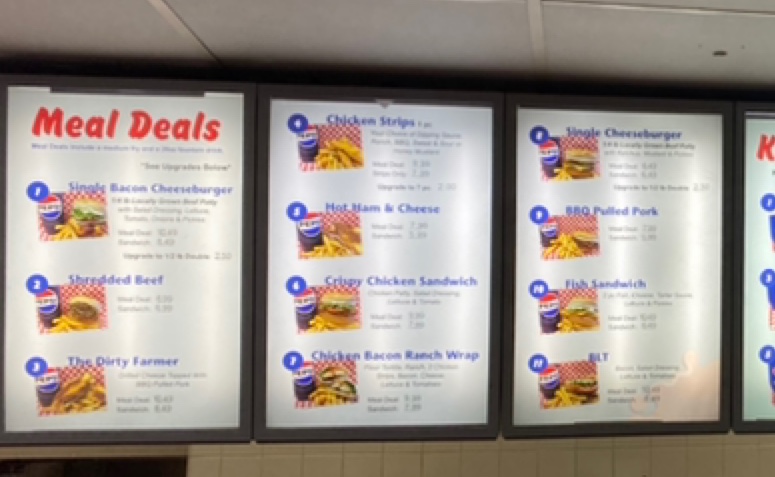 Only visited once. Can go into have them make you a meal or you can go to their freezer section and take home burger, steak, cheese and ice cream for dessert.