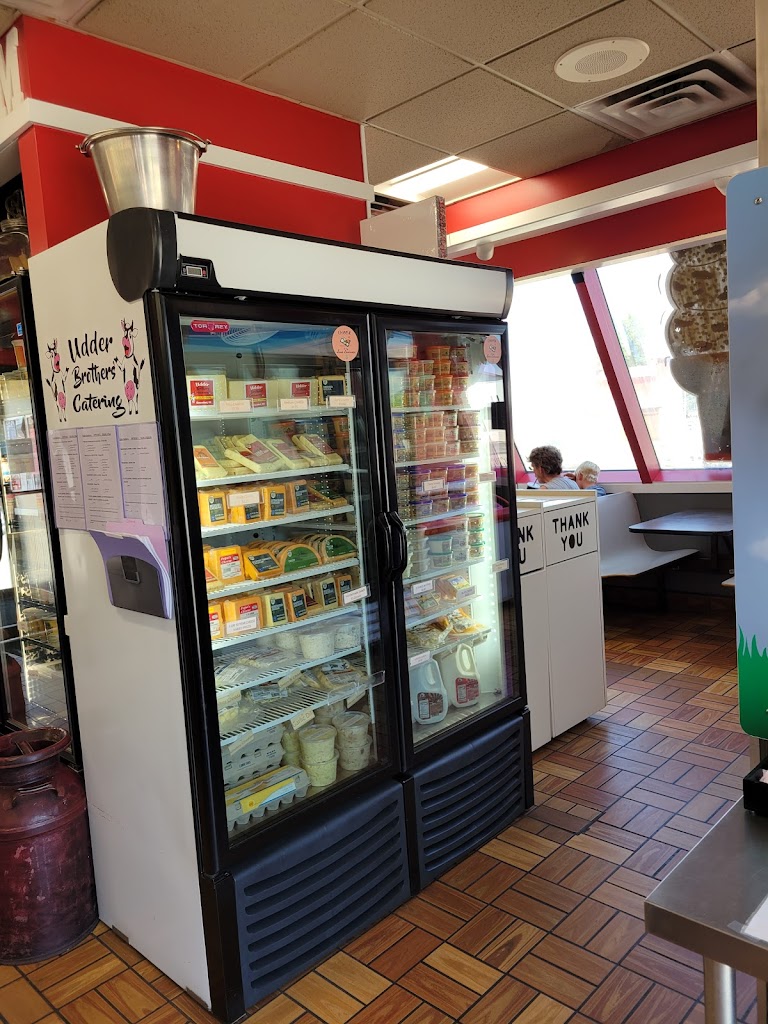 Exceptional Ice cream/custard (vanilla) and amazing true organic hamburgers! No grease simply real meat no fillers! Love the drive thru option! Cute restaurant! America needs more “Udder Brothers” everywhere!