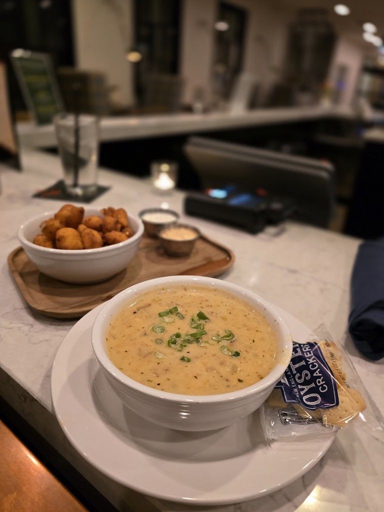 Food was wonderful. Our server was the only staff on duty running a full restaurant and bar. Despite this, she was attentive and kind.
