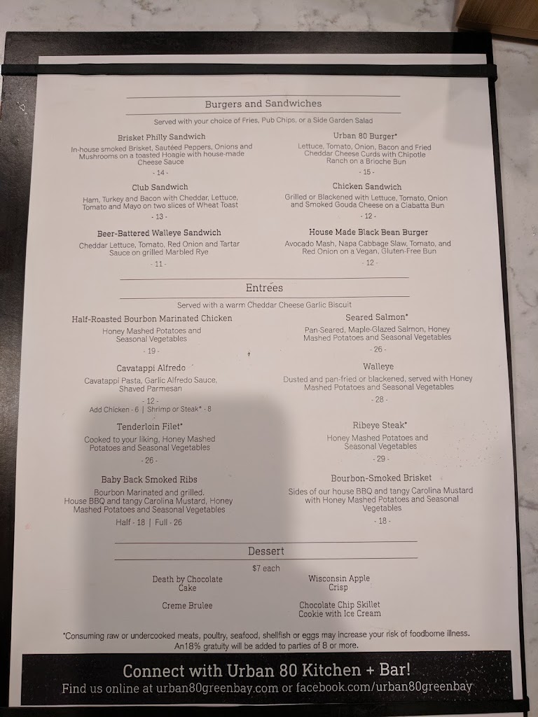 Uhm. It’s just okay. The thing that got me was I ordered an old fashioned and they made it a double without telling me or asking. Paying $30 for an old fashioned in Green Bay or anywhere is ridiculous! Especially when they just sneak it on you! Not happy at all. I did confront the waiter on this, his reply was well all our old fashioned are doubles. Then announce that and say the price accordingly!