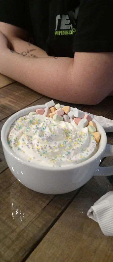 Lovely appointed, rustic-chic cafe! Friendly staff! Larger place, off the beaten path, a bit hidden away in tiny Peebles, WI. Who knew?! Cozy vibe, fireplace, ample seating with a nice dayfood selection, including a tasty java brew. Only coffee this time, but will revisit for breakfast! Love it!
