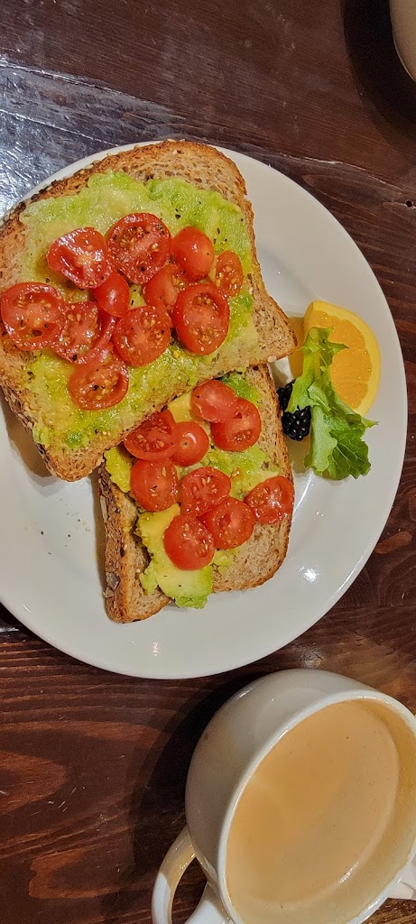 Delicious food and hot beverages. Great service and quaint atmosphere which is good for small groups including a fireplace, however there is a side room that will accommodate a larger group. Call for details. Reasonably priced menu many choices.