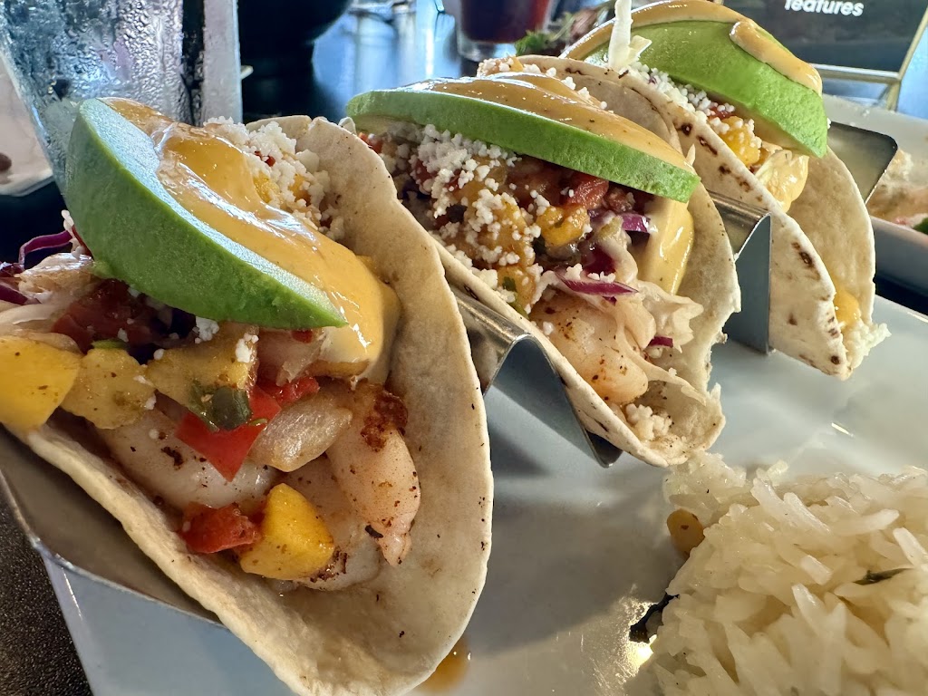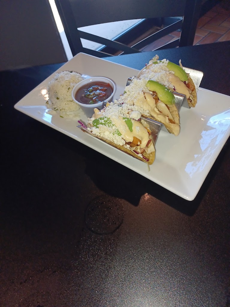 Had the pesto pasta and blackened salmon tacos… the salmon was overcooked and dry and the pasta was a bit mushy.