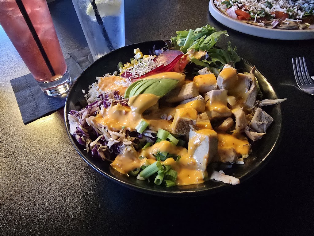 We decided on the Thai bowl over cilantro lime rice and the hot honey pizza (dynamically different choice to split) But nonetheless still extraordinarily tasty... I would definitely choose the Thai bowl again.The mixture of flavor was amazing and the sauce over top, just perfectly completed the dish!!! Y-U-M.