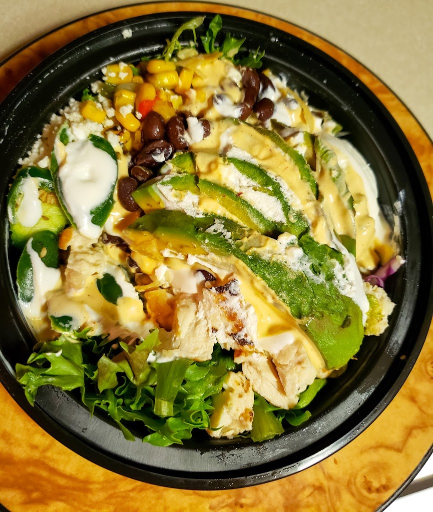 I ordered the weekly special - Monterrey fajitas, and my husband ordered the taco salad. Both items had phenomenal flavor. The atmosphere is very modern- lots of spike balls! The price was great and we will definitely be back to try more entrees/bowls.