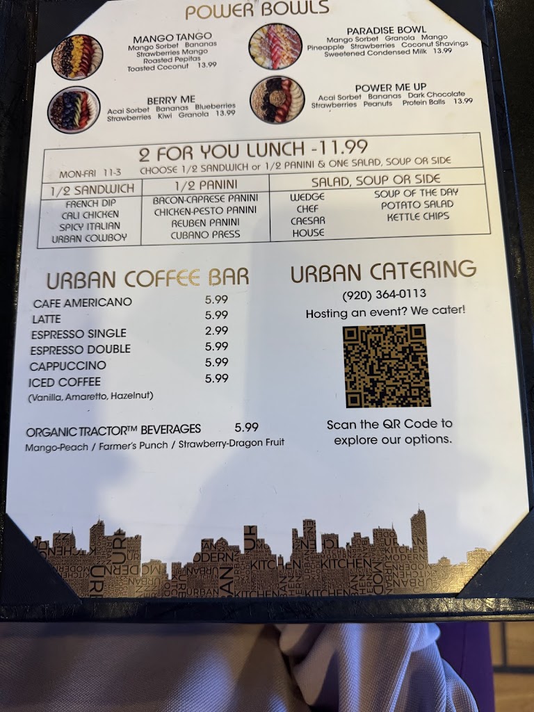 Urban Modern Kitchen offers an eclectic collection of high quality, fresh ingredients in Appleton, WI featuring contemporary sandwiches, paninis, salads, bowls, seafood, pastas, tacos, quesadillas, and creative cuisine served in a casual and inviting Urban ambience.