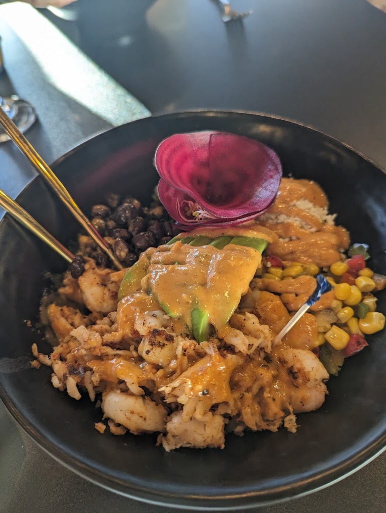 Very good mix of food styles and dietary options, good service and a nice place. I had a bowl (the Cajun bowl with rice) and my guest had the tacos. Both were well portioned and taste great. It is on the pricier side, but it does not seem overpriced for what you’re getting. Looking forward to trying other dishes there.