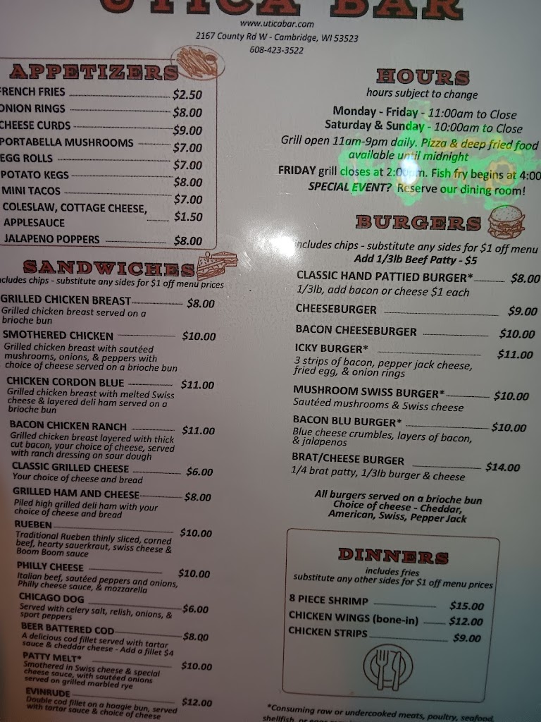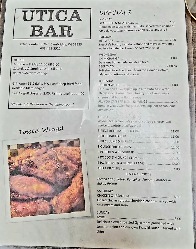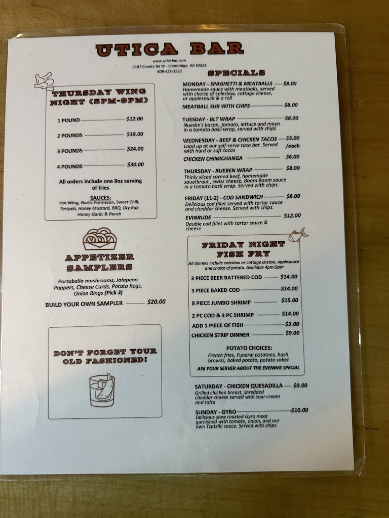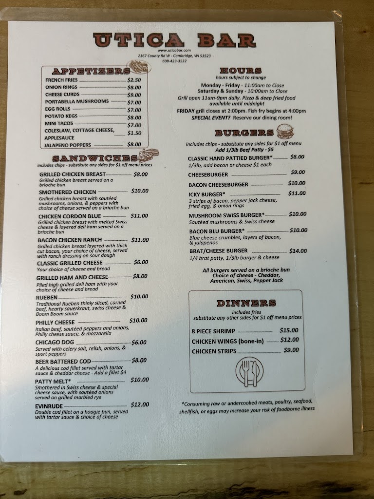 Looking for a family-friendly bar and grill to enjoy with everyone? Need a place to unwind with friends? Stop on by the place everyone is talking about in Utica, Wisconsin, for great drinks, homemade food, and a family-friendly environment