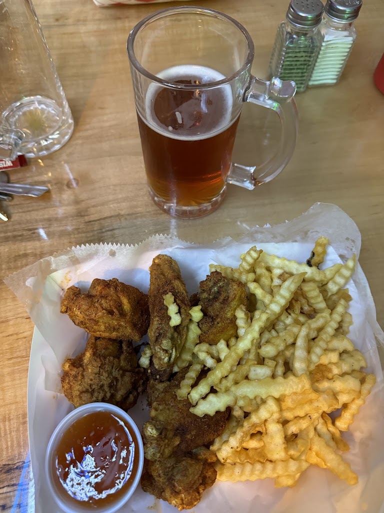 Good food. Burgers, wings and fish fry has always been good. Great outdoor patio. If parking lot is full, there is plenty of street parking