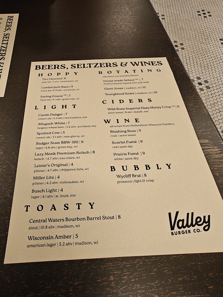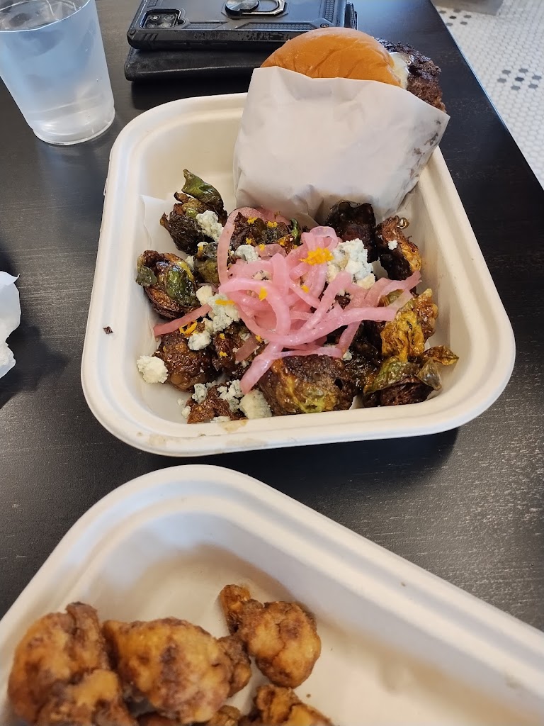 Valley Burger is situated in Wisconsin Farmers Union building. I grabbed the OB, with fries and the brussel sprouts for sides. My burger was a little greasy but it was so so delicious. I literally inhaled it. The fries were crispy and the valley sauce they come with is a tomato based sauce of goodness. The brussel sprouts were interesting. Pickled onions and bleu cheese came on them which I thought was different. They were still very tasty though. They have seating within their space and table service. I will definitely be back.