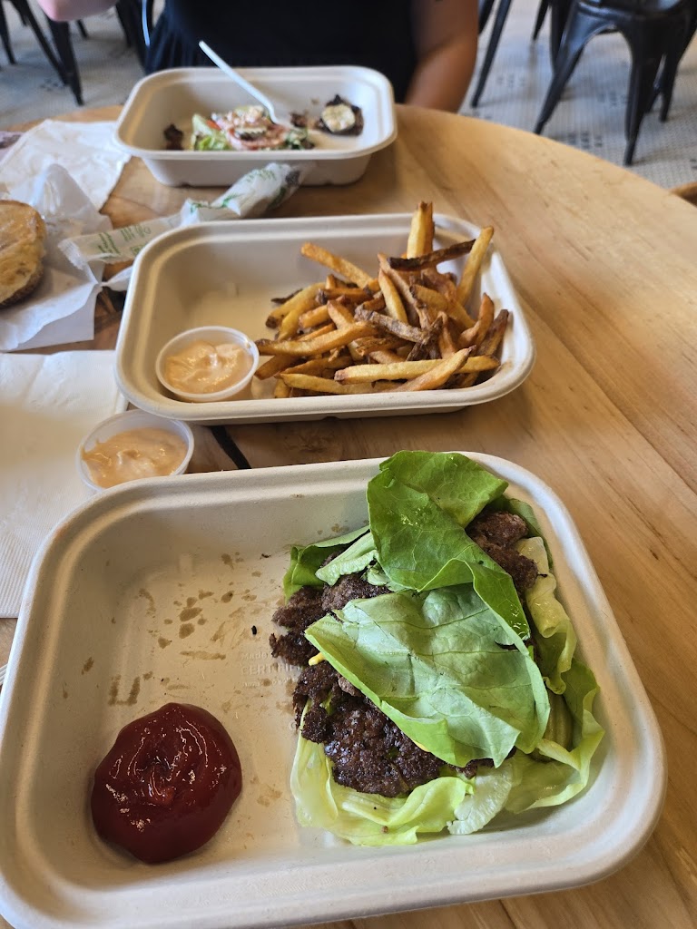 I received a gift card for my birthday, so was excited to check it out. There were only a couple of people in the restaurant, so I felt we could have had a little more attention from the server. I got up to get my own ketchup, salt and cutlery. The burgers were good, a bit greasy, but to be expected from a smash burger. My fries were overdone so did not eat most of them. The valley sauce and dill ranch were both good. As a burger joint, I was surprised to have an $85 bill for two people; I understand from previous comments that you are using better ingredients. Overall it was fine, but my boyfriend and I both agreed it wouldn't be a place we would revisit. I do wish them well; I think the overall Atmosphere of the building is something new to the area!