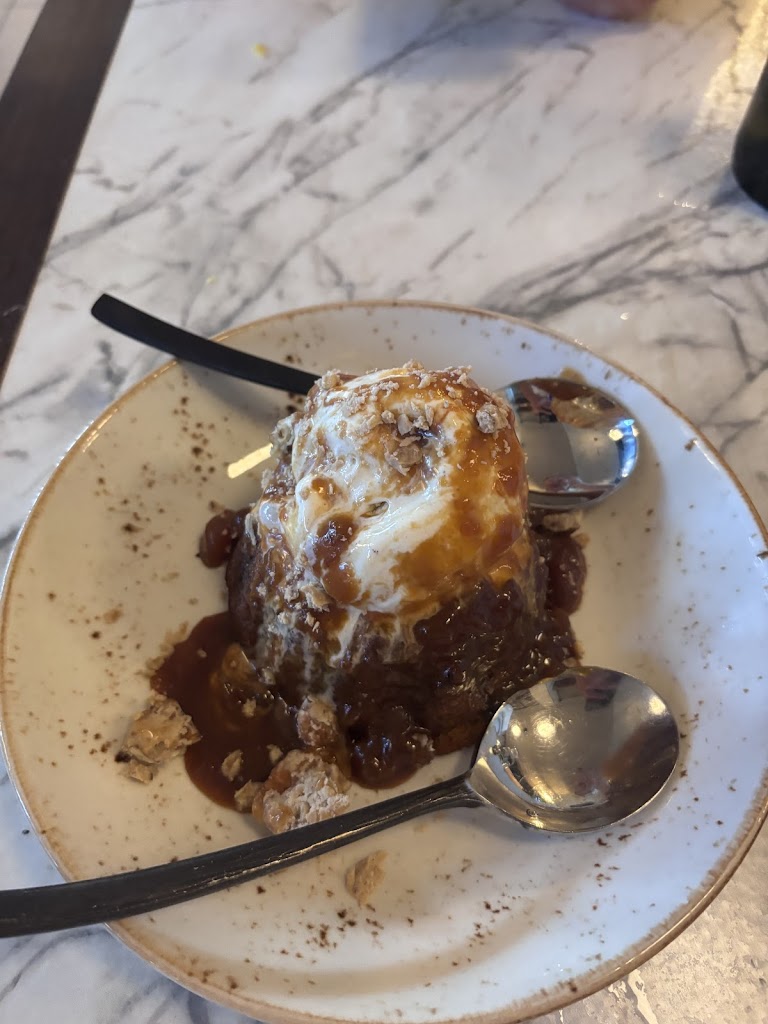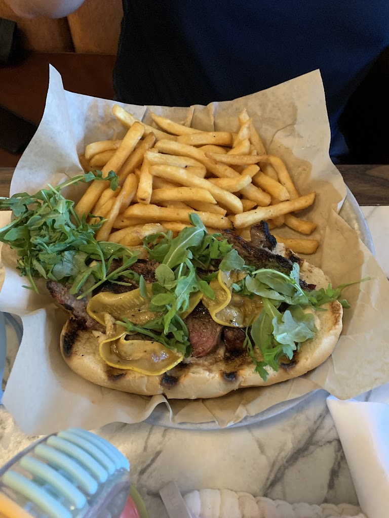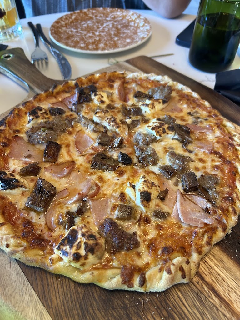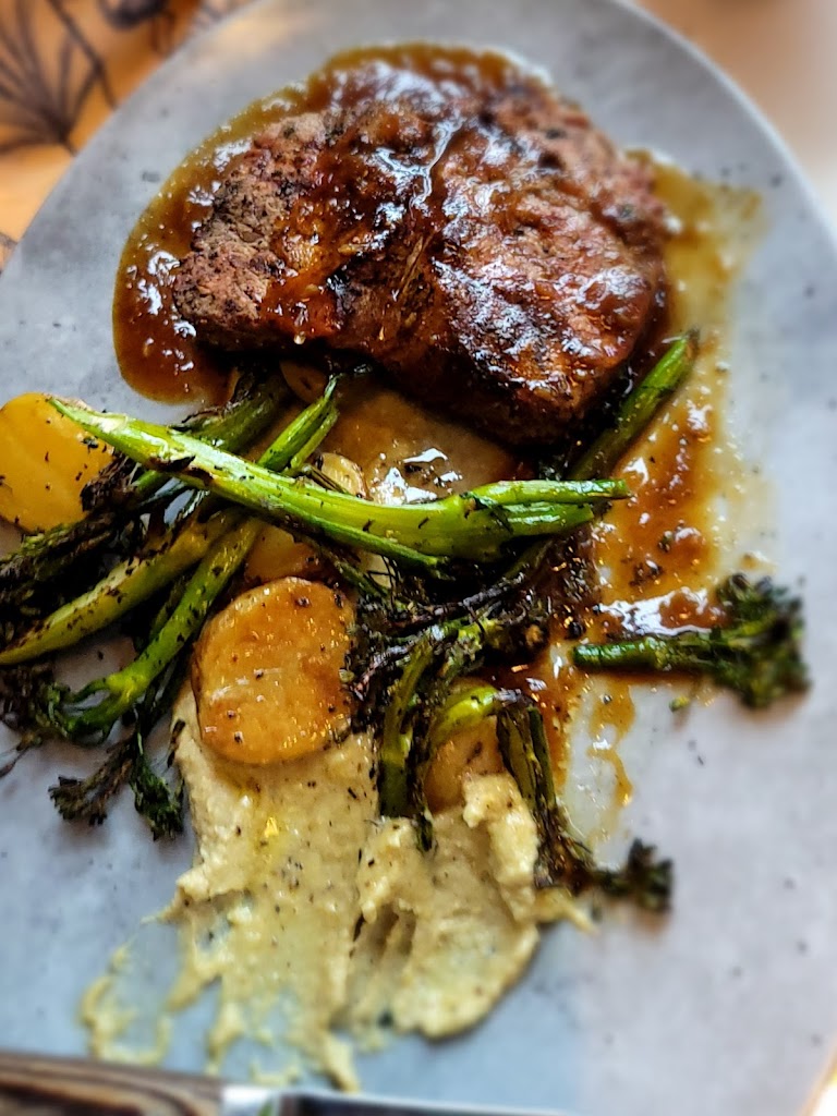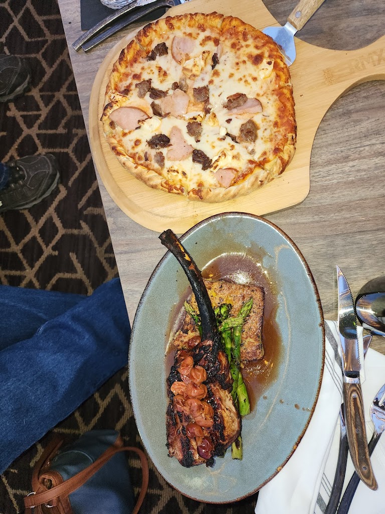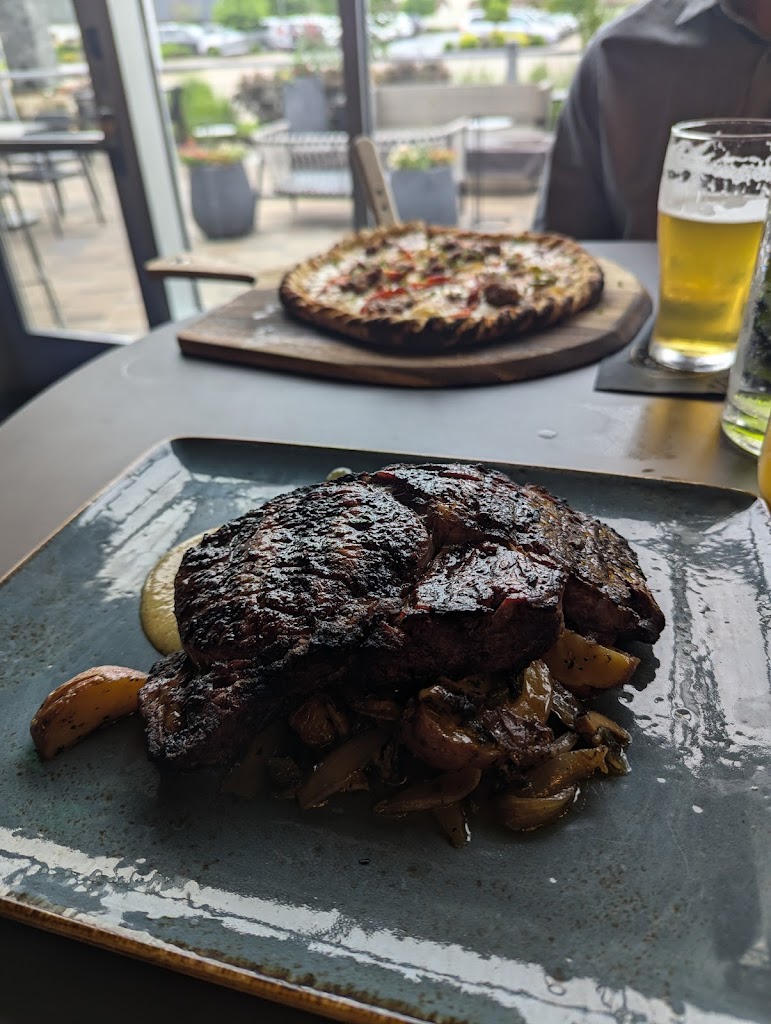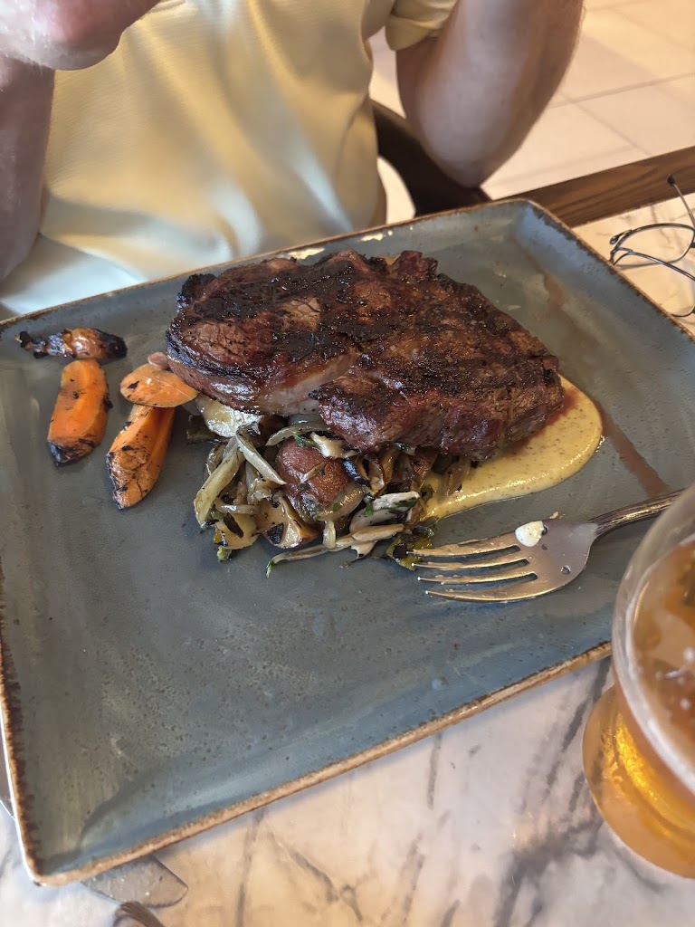 We began with a couple of drinks and the brussels sprouts appetizer, which were perfectly crisp and full of flavor. For our main courses, my husband enjoyed the Philly cheesesteak pizza, while I savored the ribeye—cooked to perfection. We ended the evening with the crème brûlée, which was rich, creamy, and simply unforgettable.
