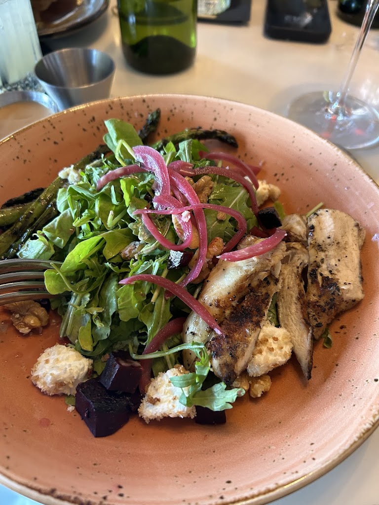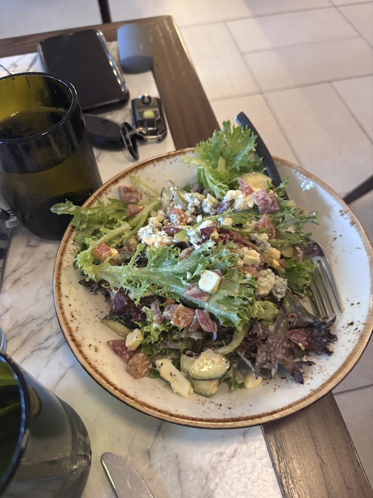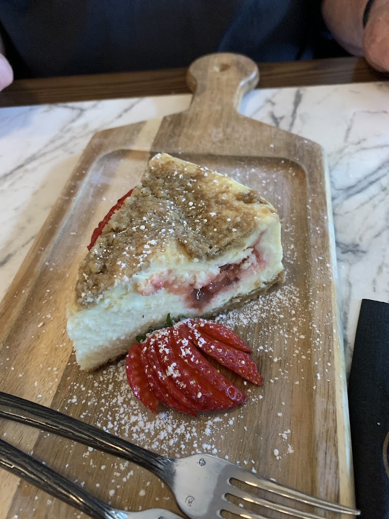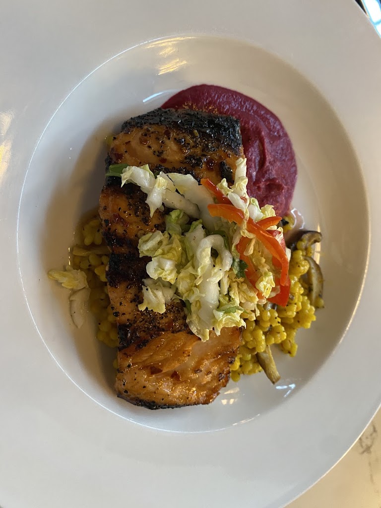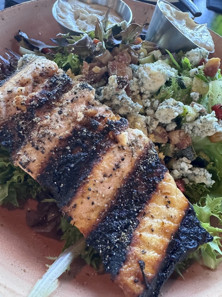 I had the salad with salmon added. It was delicious. The drinks were yummy. Our waitress, Britany, was so helpful and cheerful. We love this restaurant. We had the cheesecake was delicious