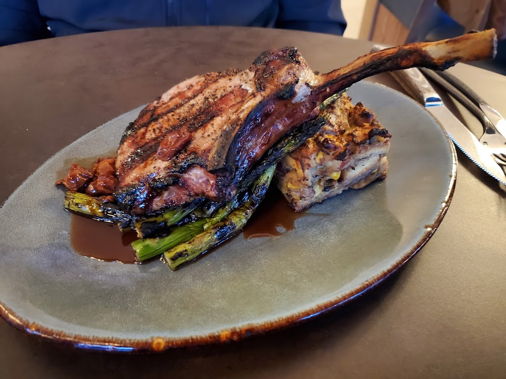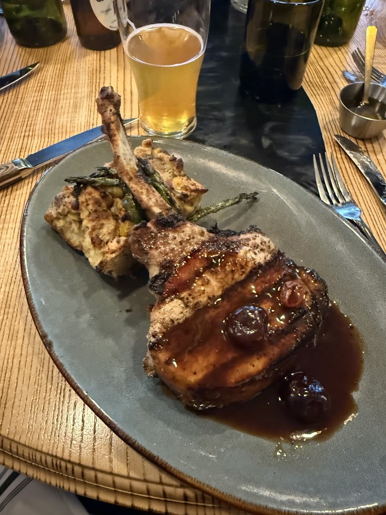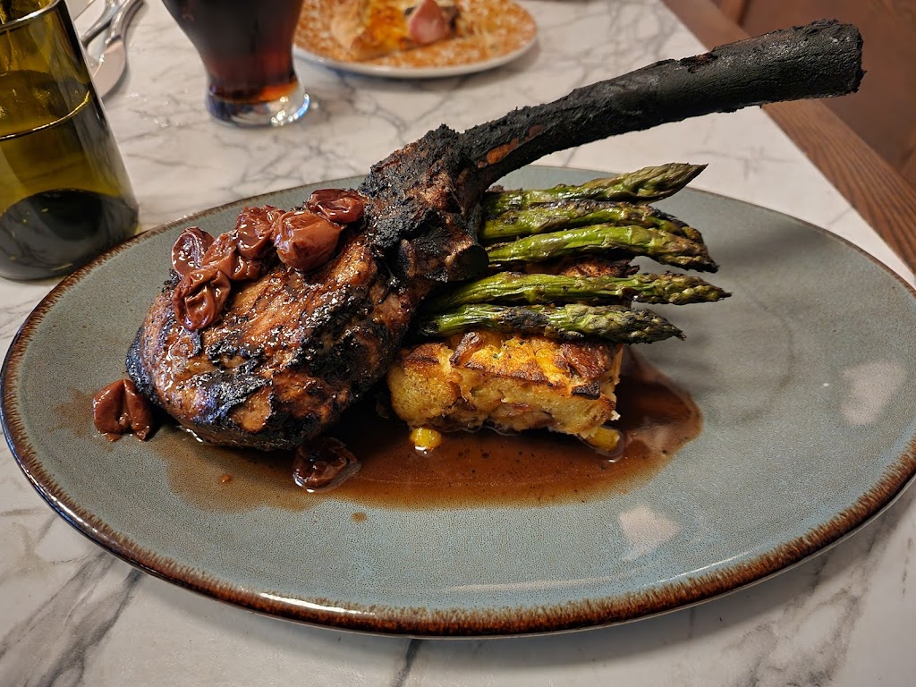 Appetizers and entrees are phenomenal. The Tomahawk pork chop was cooked perfectly, and came with perfectly grilled asparagus and amazing - I mean amazing,- spoon bread. I was skeptical about the braised short rib ragu, but it was so satisfying!!