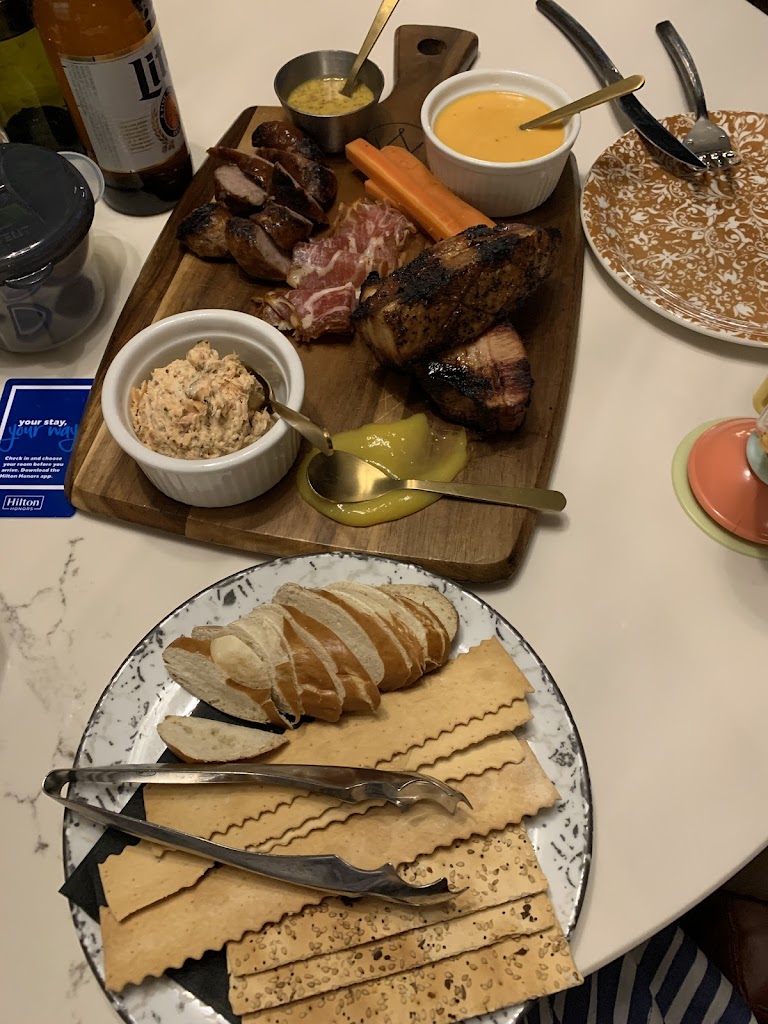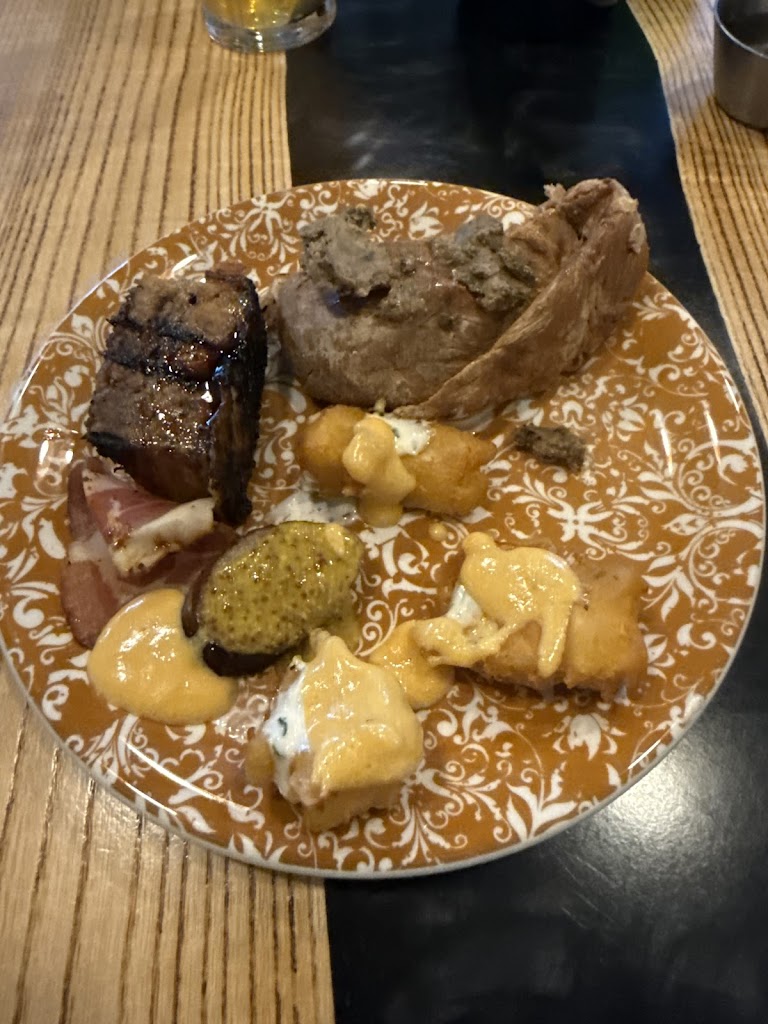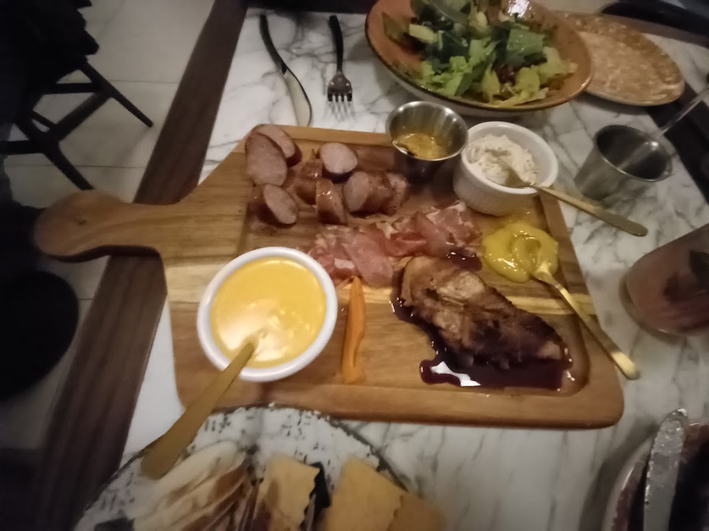 For food, we had the smoke plate, Kimchi, brisket queso, filet, Philly cheese steak pizza, rice and beans, street corn salad with steak, house chop salad with chicken and a bunch of drinks. All great.