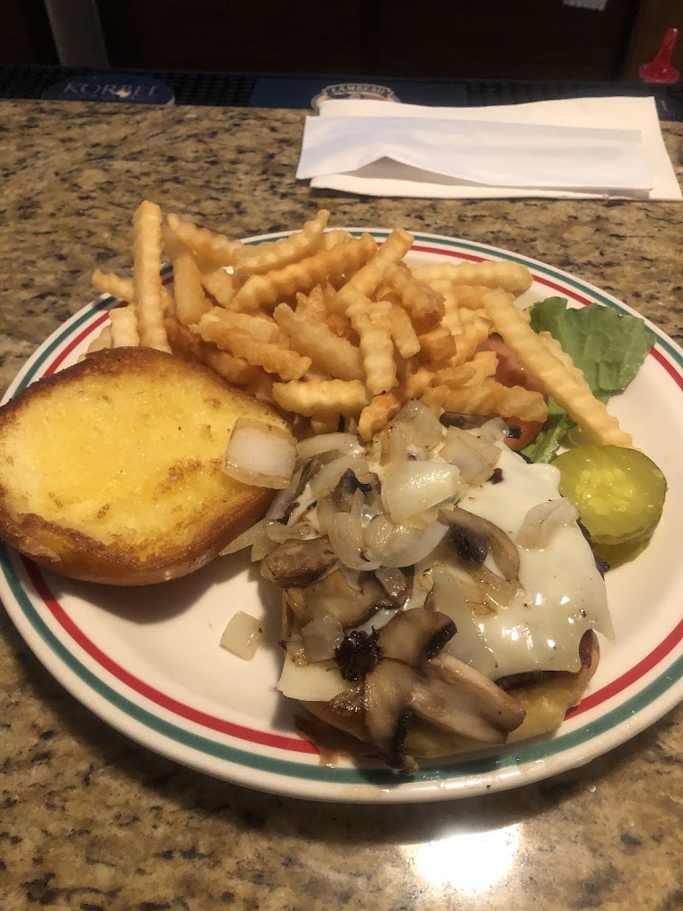 Saturday night and only offering apps and fish. Guy cooking tells waitress not cooking anything but fried. Yet person sitting next to us just had a burger.