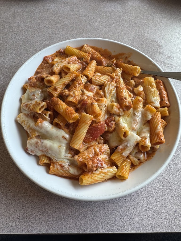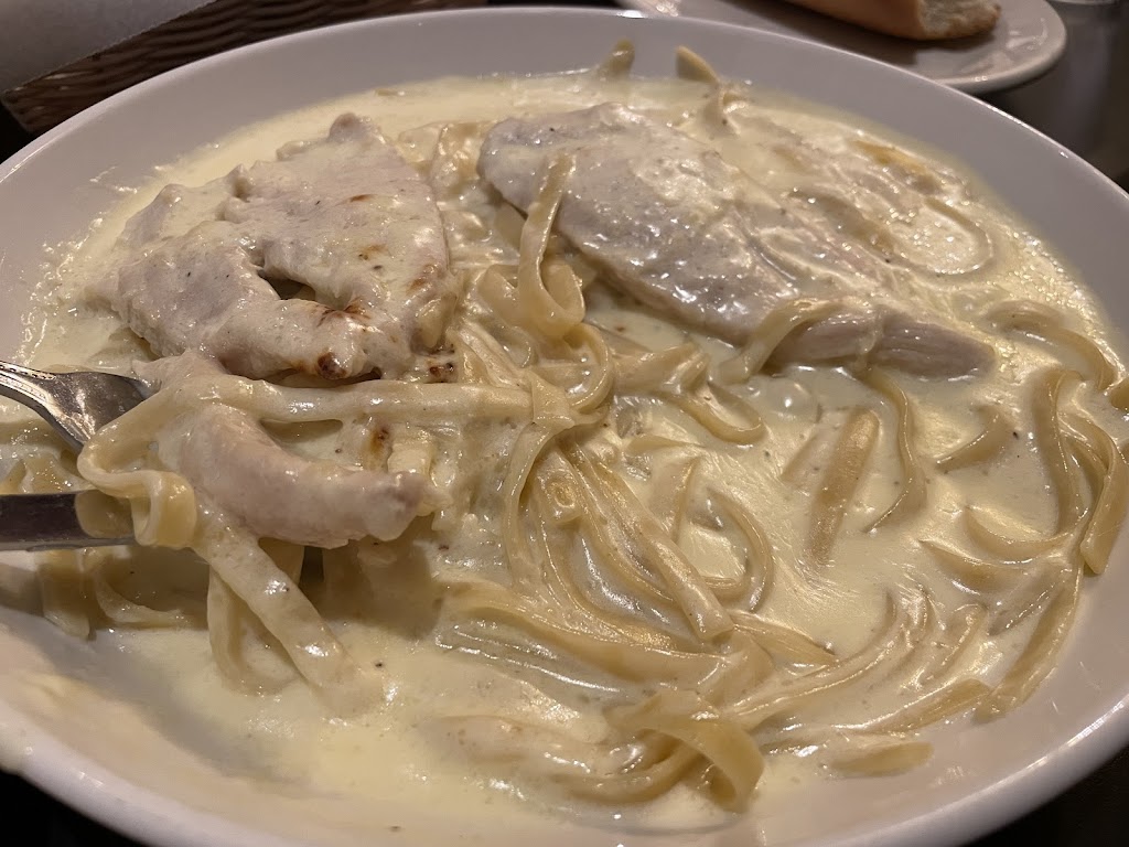 The Alfredo sauce was also pretty good. Chicken on top was bland. Almost boiled bland.