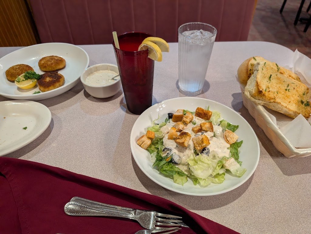 She called in a simple order of the crab alfredo with garden salad and some french dressing for pickup. I arrived to pick it up just as we hit Appleton shortly after 6PM. To my surprise, not only was there our Alfredo, salad, and dressing, but also a cup of their minestrone soup, 3 half's of their amazing garlic bread, and even a dessert! We were simply shocked. We never asked for anything extra, but they gave it to us anyways.