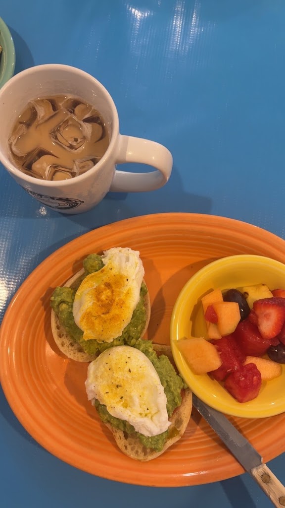 Cute and cozy cafe. We were promptly greeted and seated. Avo toast and healthy granola were delish, and coffee was good and hot. Spied the coffee cake ordered at another table — that looked amazing and they were raving 😋