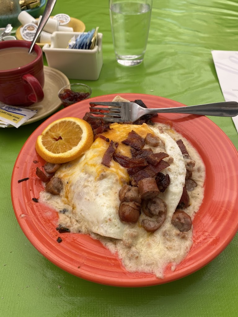 Food was excellent I recommend the potato bowls more than enough food to fill you up and delicious, coffee was good ate on the screened porch nice touch, waiter was a bit slow to check on us but they were busy when we first got there, food is excellent and the little thing of cherry jam will make you buy some if you try it on anything.