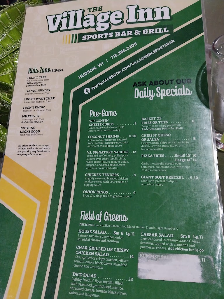 Recently had my inaugural visit on a Saturday night for a Ghosts of Mississippi gig. The venue was perfectly set up to enjoy a live gig, thanks!! The acoustics and the view: perfect. Unfortunately I was prepping for an upcoming surgery so I only had water but the food my friends had looked delicious! Chloe took great care of us and well actually all the tables, never missed a beat, she was on top of it, all night, thanks!! I liked the wall of football helmets, all teams, pretty cool. The bathrooms were close by so it wasn't a long jaunt from where the show was so that you had to worry about missing much. The bar area was also well spread out and well lit. The parking lot wasn't huge but big enough and I think if it's full you may be able to park out on the street. Looked as if there is a little patio at the front door.... something worth checking out this spring and summer. Definitely looking forward to catching another gig here...while enjoying a meal as well. Thanks Village Pub for a comfortable, fun and well taken care of inaugural visit.