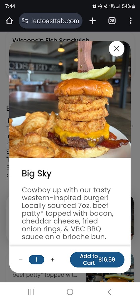 Update: got the big sky burger, definitely doesnt look like the app or online picture, so that was disappointing. But the flavor was delicious! Big portion size, cooked perfect, and seasoned well. I would get it without the bbq! Probably one of the better burgers ive had. I do recommend it, Just a heads up to anyone who hoping for the thick onion rings on top like i was...that doesnt happen. See pictures.