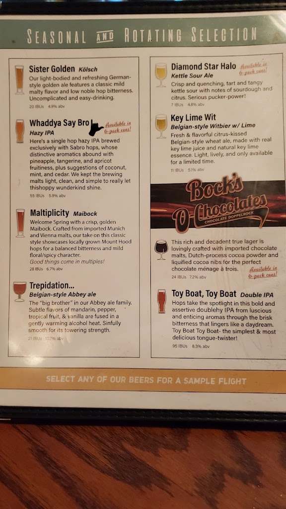 Great Food and Service. The brews we tried were tasty. Definitely come back when in the area again.