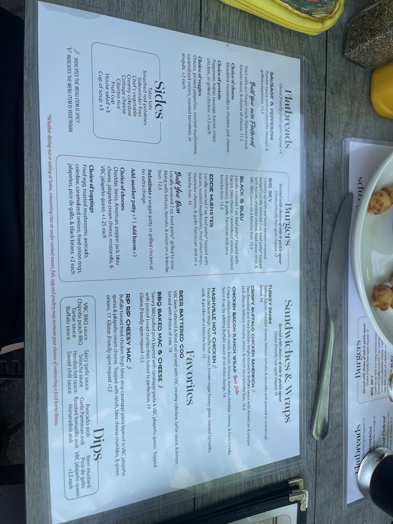 Food was good. Menu said cider would be one of 2 brands but was a commercial brand I wouldn't have selected if I had realized that. Tried to checkout by QR code but didn't work.