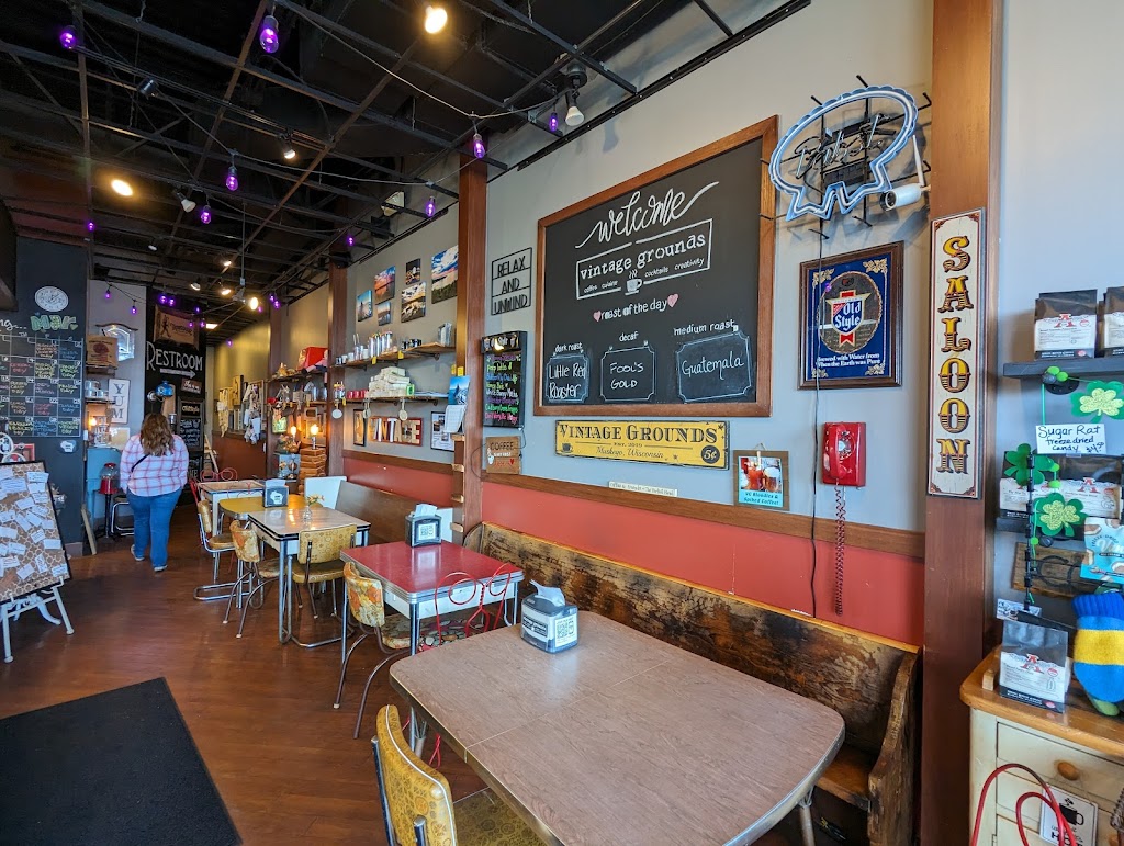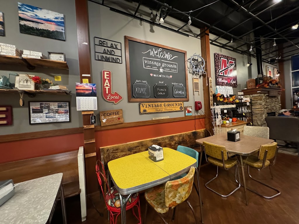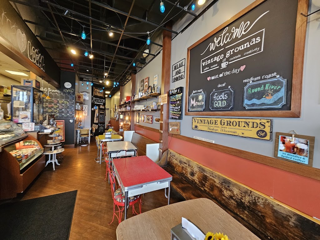Vintage Grounds is a locally owned and operated coffeehouse in Muskego, WI. We pride ourselves in creating a cozy atmosphere with a vintage vibe. We proudly serve Milwaukee-based Anodyne coffee and have excellent toasted sandwiches and salads.