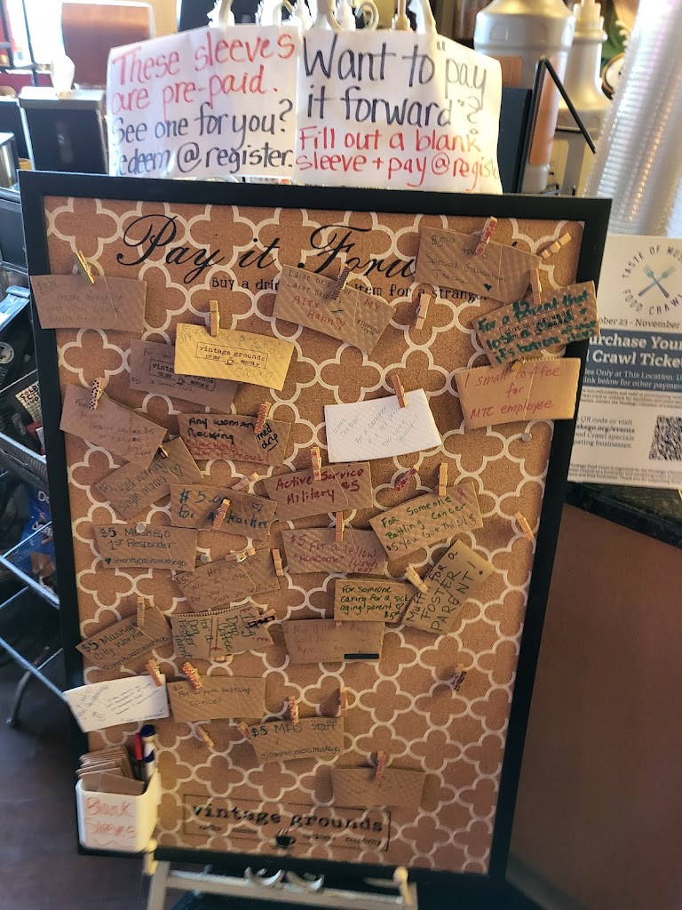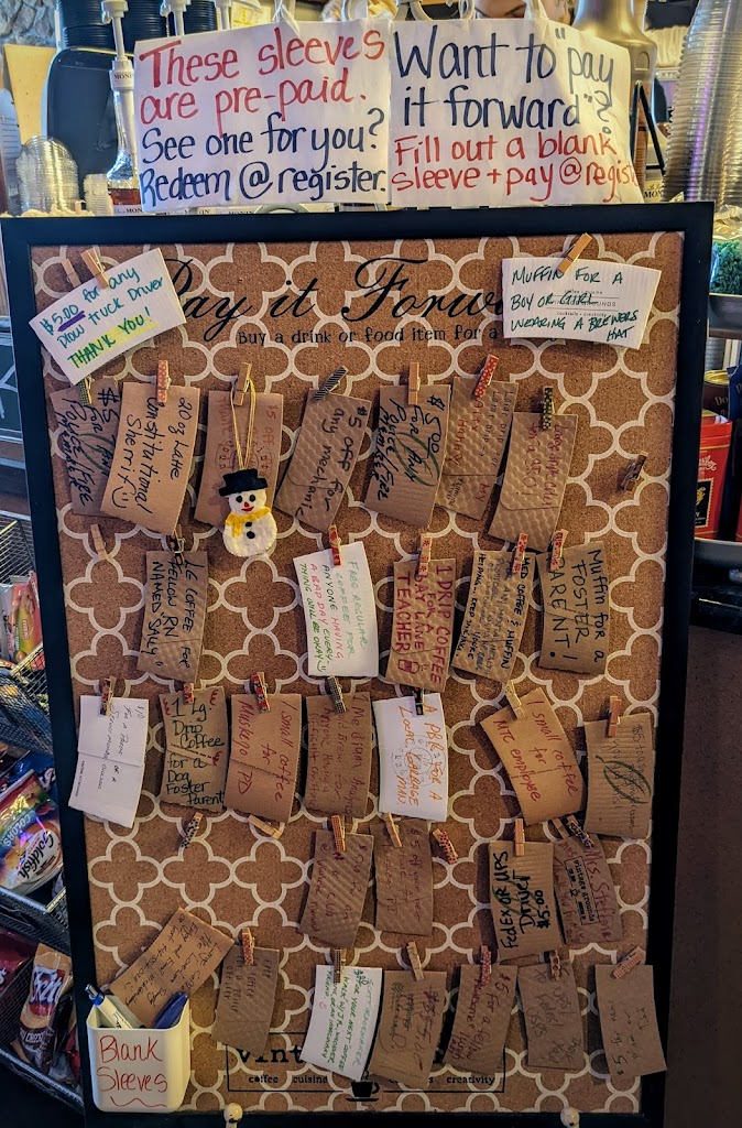 Great coffee! Decent but not the best coffee shop baked goods around and fun atmosphere. Loved the pay it forward board. Friendly staff.