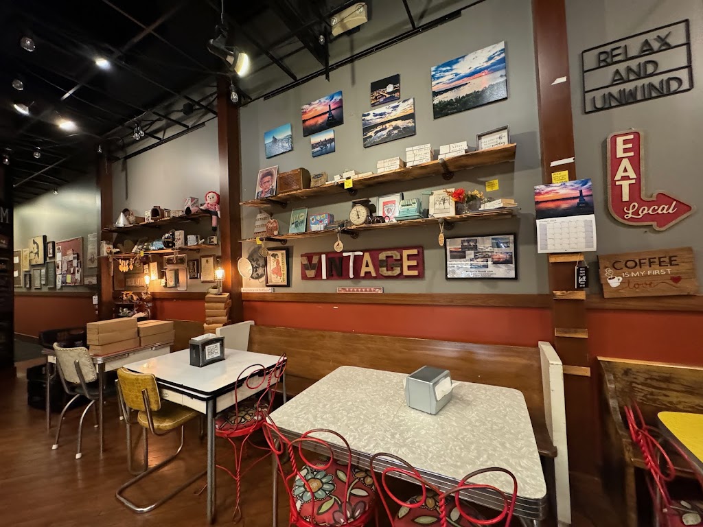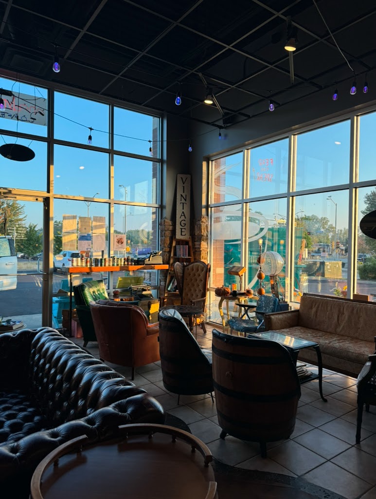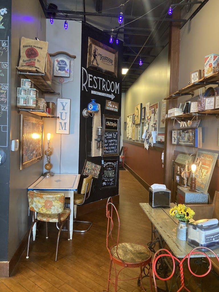 Decided to come in vs the drive-through option. Nice decor that looks like a cross between a Flea Market and an Antique store. I appreciate places that don't try to look like "the other guys." Very warm and intriguing. A visual feast for those of us prone to adult A.D.D.! Had places allowing small groups to sit and enjoy if they wished.
