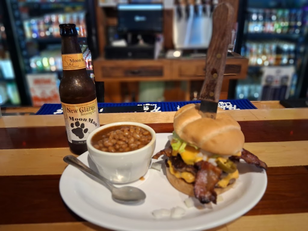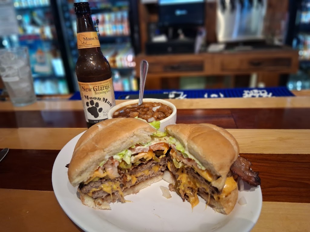 I ordered the incredible Hwy. 35 burger and made it a double with jalapenos. Plus the delicious smoky baked beans with pork made this a lunch fit for a king! You won't leave hungry... Definitely the best food in Alma. Thank you Steph for cooking up this masterpiece and Nikki for the friendly bartending! Five star experience π