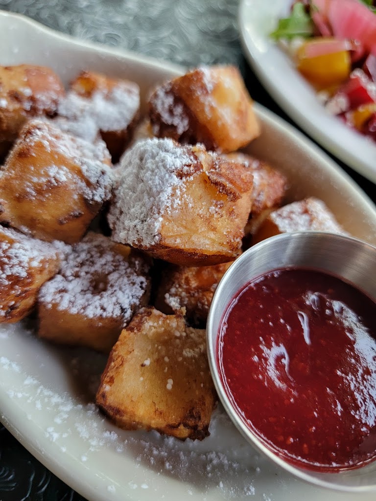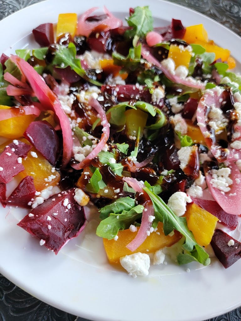 For dinner, we decided to try a range of options from starters that could have been considered dessert to some interesting new options we haven't had before! Everything was really delicious and we had no complaints at our table. My favorite item was for sure the Wisconsin Donuts! A Wisconsin cheese curd with a light and crispy funnel cake breading, served with house-made raspberry sauce. Absolutely delicious—you could start and finish a meal with an order of these treats. The Beet Salad was also a table pleaser, and Jake's PB Poppers were a hit.
