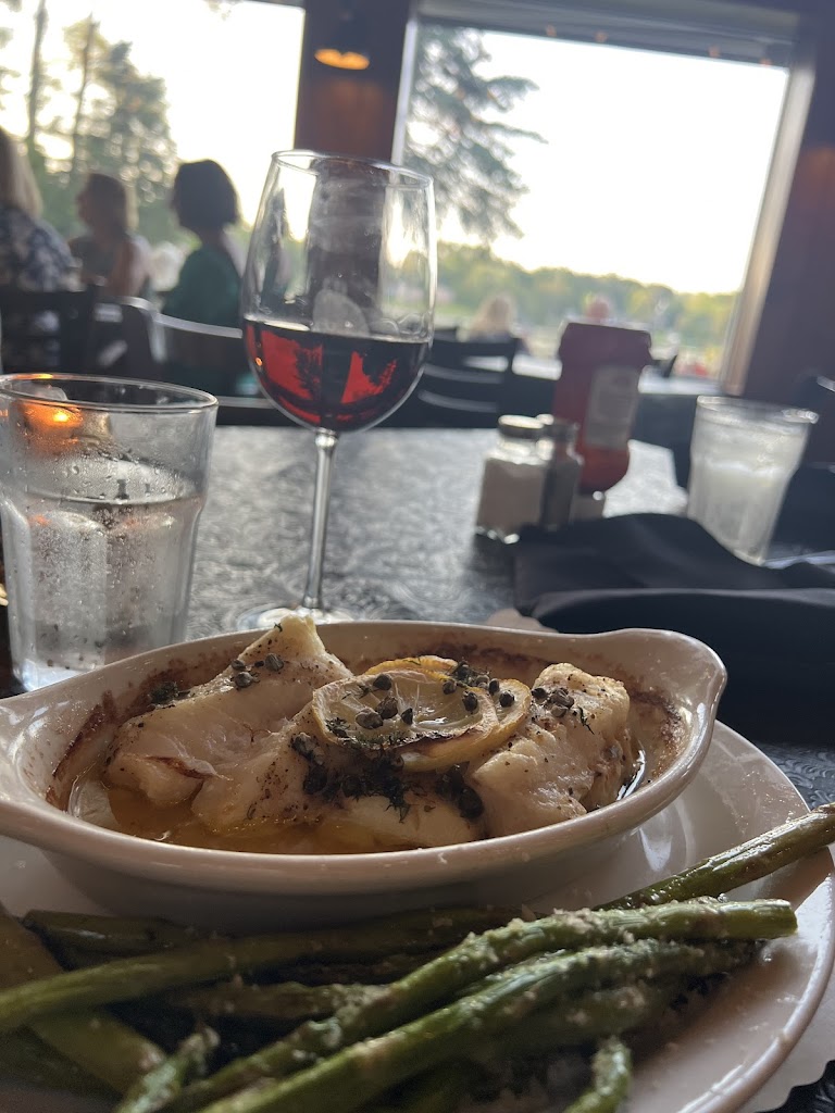 Lemon caper cod overcooked, no capers and cold asparagus. Prime rib, ordered medium rare, was served nearly raw. This establishment needs to decide if it wants to draw a burger and sandwiches clientele or a fine dining clientele. Prices are fine dining but experience says otherwise. We won’t return.