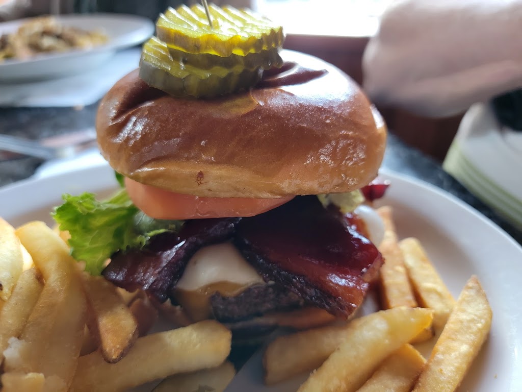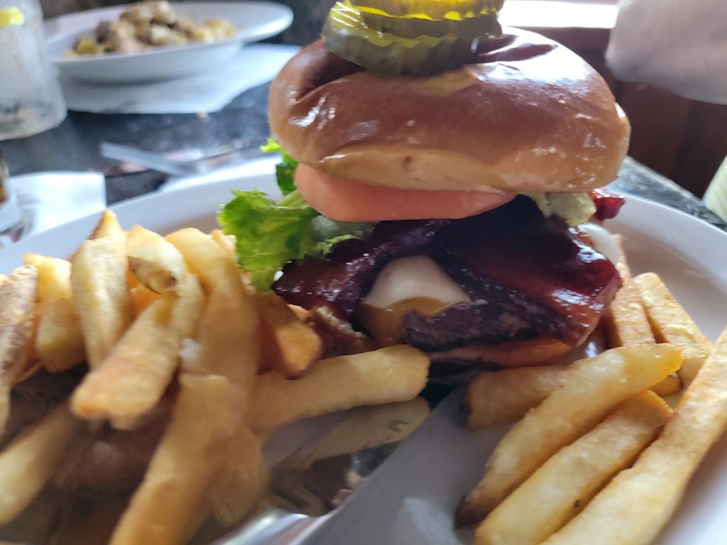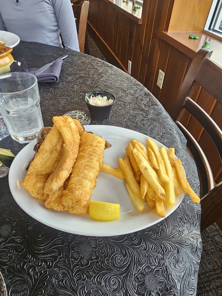 Love the atmosphere & views! Our waitress was excellent. Other staff was wonderful about keeping our water glass filled. Prices are competitive. The food was very good. We tried some different ( for us) items like the stuffed dates. Excellent! The perch fish fry was excellent. My chicken sandwich was great! Their chips are done perfectly in my opinion…golden but not dried out or very dark like many restaurants serve them. We can’t wait to return to try the burgers, prime rib sandwich & beef Wellington. Many nice offerings on the menu.