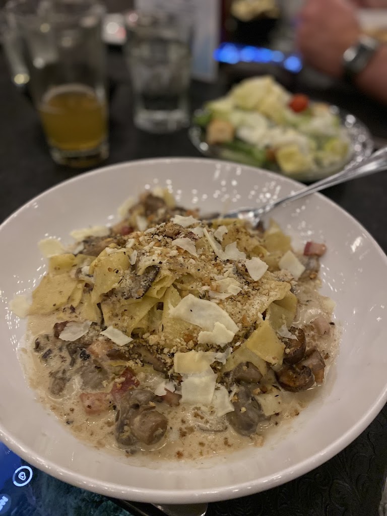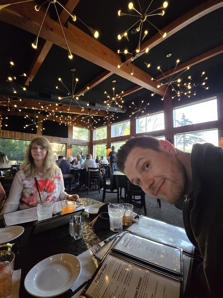 Beautiful dining room that looks at the lake. It was too bad the weather wasn't nice because we would of loved to eat outside but we'll have to come back! We got seated right away on a Friday night with no reservation. Took a little bit to get our food but it didn't phase us at all. Seeing as we were on a date night without the little one, so take all the time you need 🤣. Well they bought all our drinks for us for the wait on the food which we weren't expecting at all!! So that was extremely nice. Our server was so sweet too and very good at her job, I wish I could remember her name. We will definitely keep this one in our list!