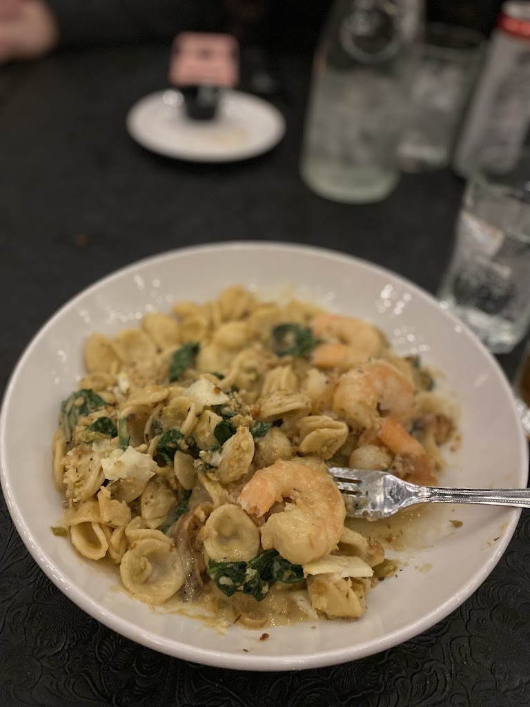 I had the Blackened Shrimp Bowl and Anne ordered the Pan Roasted Chicken. Our friends went with the Honey Bourbon BBQ Bacon Cheeseburger and Cheesy Truffle Orecchiette. As I mentioned, we were a happy group because everything was delicious.