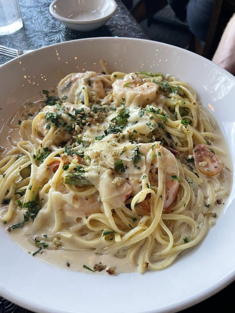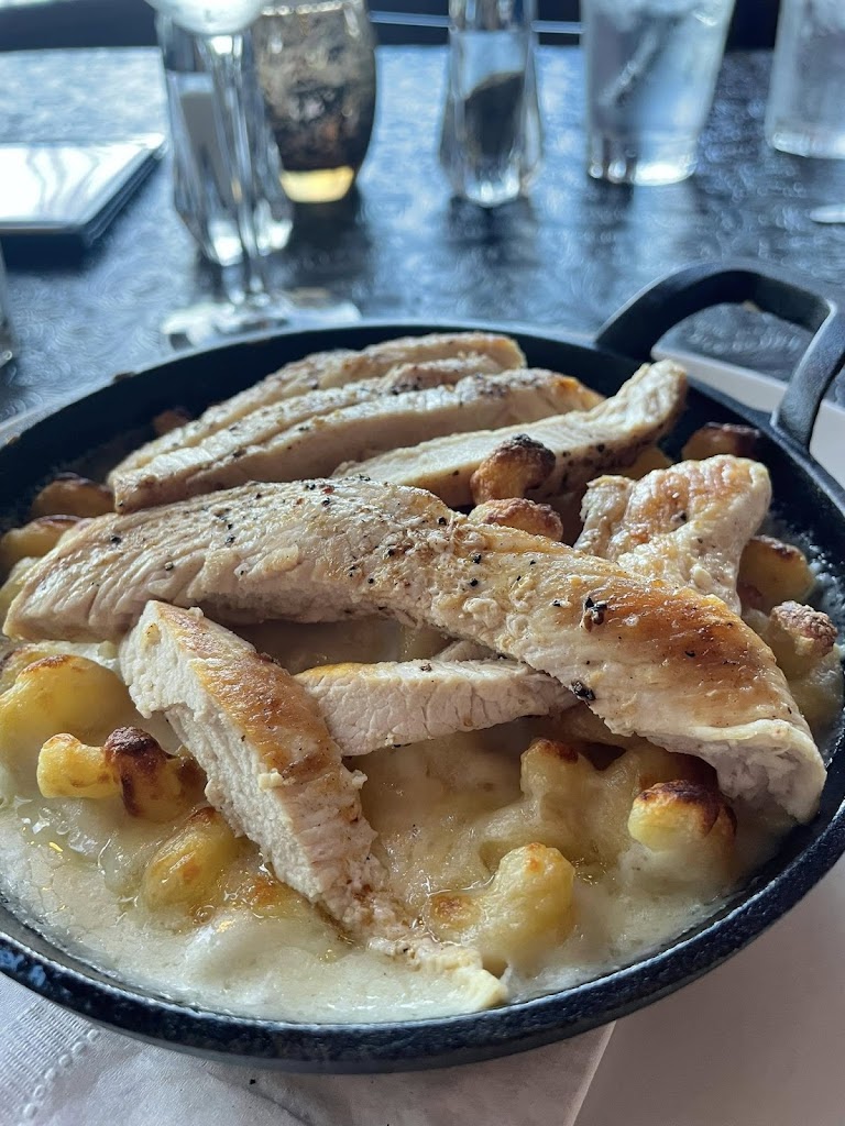 Fantastic experience! We arrived early enough, and they sat us right in front of the window— beautiful view. Very friendly staff. We ordered Cheese Curds, Shrimp Scampi & 4 cheese mac & cheese with chicken. The cheese curds were good, the scampi was great — I would suggest to tone down the lemon as it was very overpowering. I loved the grilled chicken ( I’ll order chicken from this place anytime) It was very flavorful & cooked perfectly. The mac & cheese, however, could use something to add flavor as it was very bland on it’s own.