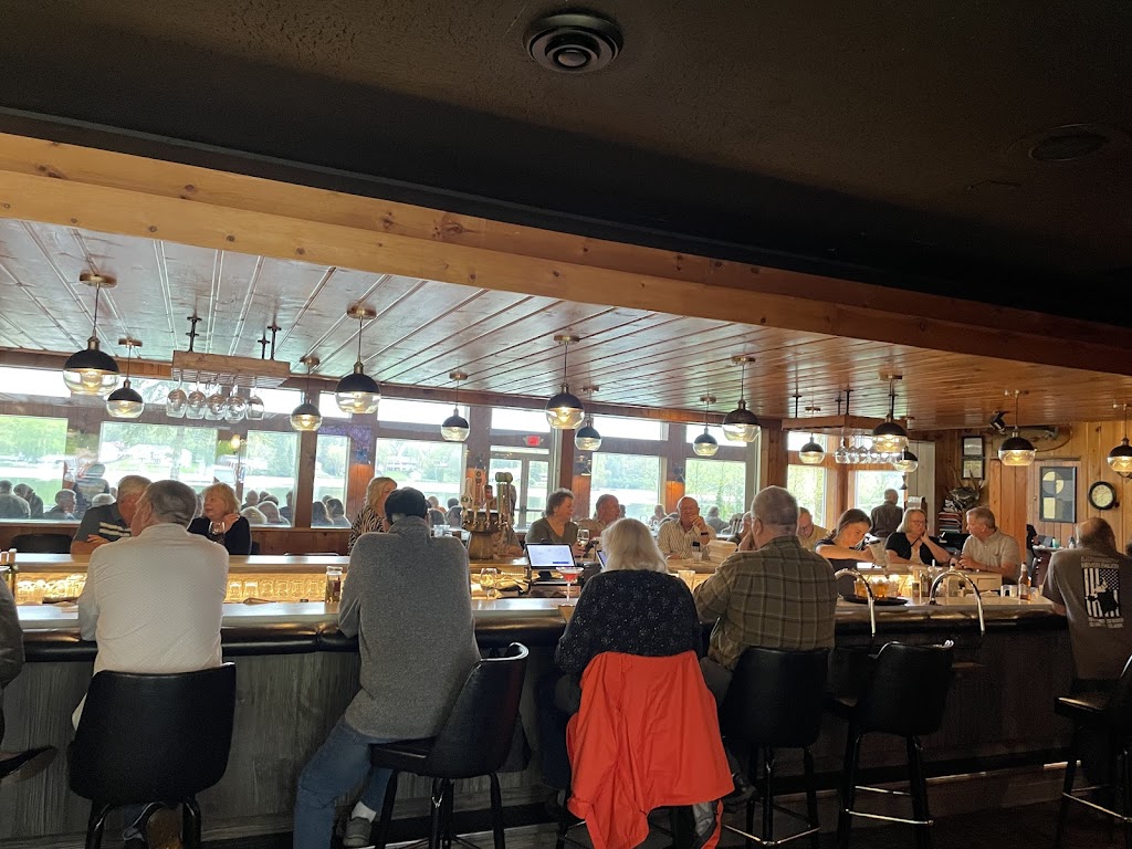 Come for tasty food and camaraderie around our U-shaped bar or dining room with amazing lake views.