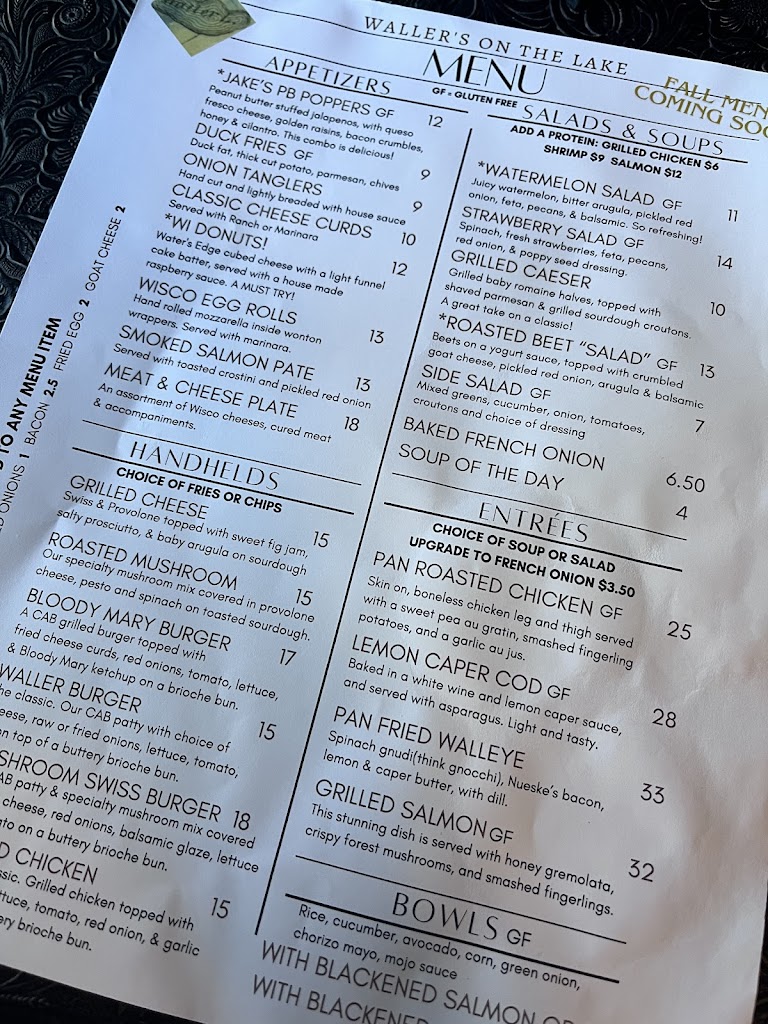 Come for a side salad. Stay for a pontoon ride. I have been going to the various supper clubs in this location since the 80’s and, after eating at Waller’s, was very disappointed in the food and the cost of the experience. The new owners have dramatically increased prices while removing the salad bar and complimentary bread ($9 bread can be ordered as an appetizer). Here were the reviews from our table: