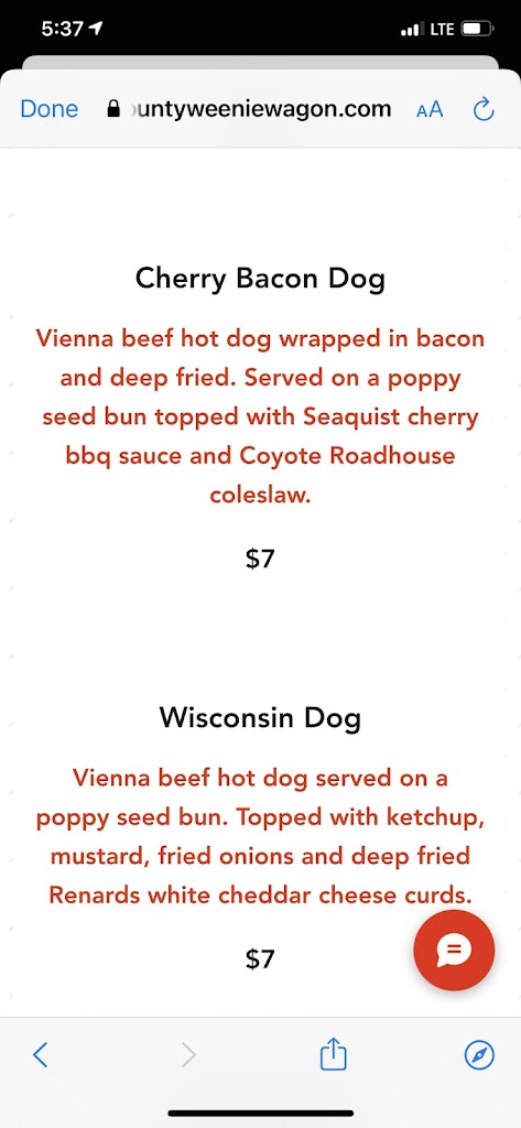 Wally’s is awesome! We had the Chicago dog, bahn mi dog, and the cherry bacon barbecue dog. All were amazing. We also got the chili cheese fries, they could serve a family of four, and they were great. Definitely a must when we’re in door county!! The owners are the friendliest and nicest people, too