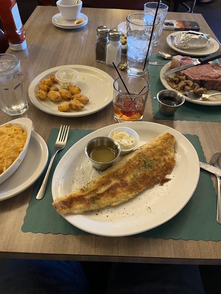 The main entrees we ordered were delicious and large portions, saving this from being a "bad" experience. Our group really enjoyed the ribeye, chicken alfredo, tender tips, and chicken cordon bleu! "Au gratin" potatoes were overcooked cheesey hashbrowns - baked potato and regular hashbrowns were good. Prices were fine.