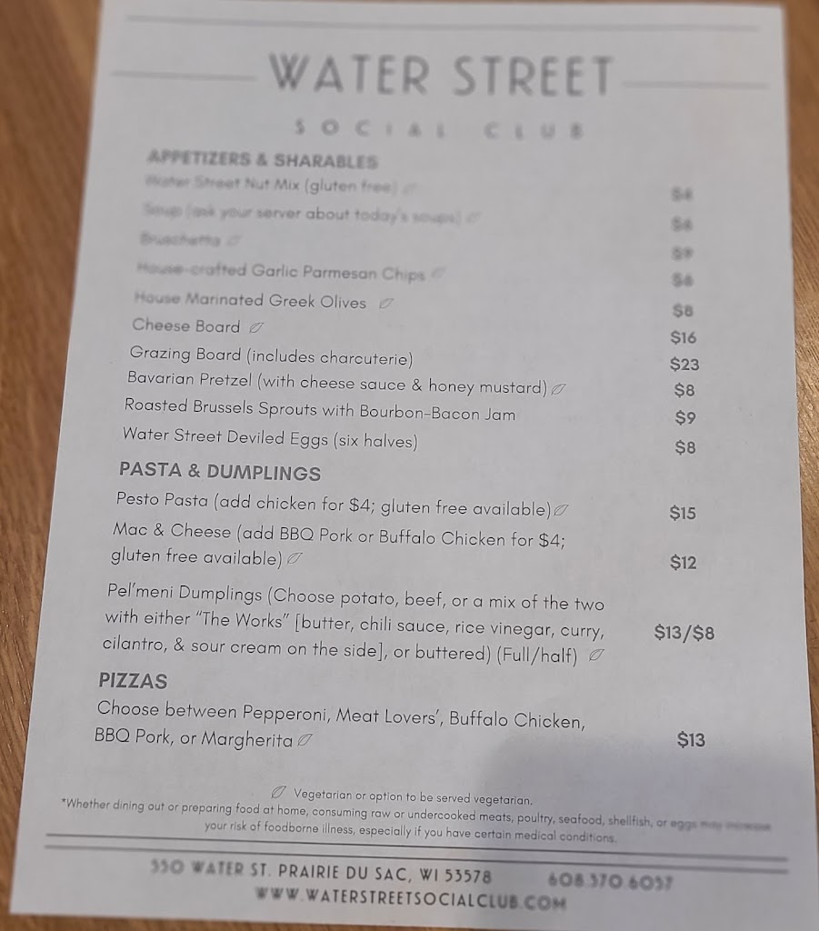 Every interaction at the Water Street Social Club has been fantastic. Food is amazing, and the cocktails are first rate! Recently, I rented the facility for my daughter's bridal shower and was so very pleased from the great service in helping me plan to the perfectly appointed venue! Very pleased with the incredible asset in our community! Gotta try that speakeasy overlooking the Wisconsin River!!!